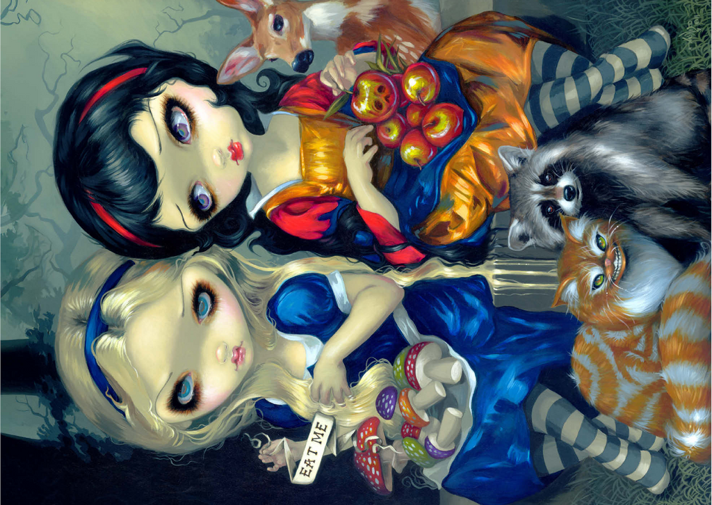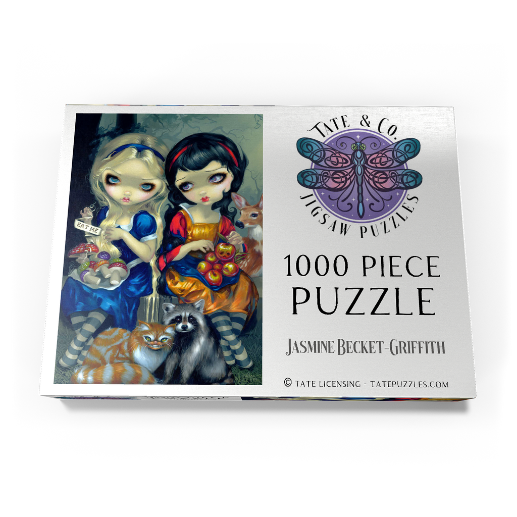 Setze mit diesem bezaubernden Puzzle eine märchenhafte Kreuzung zusammen! Erlebe Alice und Schneewittchen zusammen, jede mit ihren ikonischen vergifteten Leckereien. Umgeben von Schneewittchens Waldfreunden und Alices schelmischer Grinsekatze, verbindet dieses Puzzle zwei klassische Geschichten zu einer skurrilen Herausforderung. Perfekt für Rätselfreunde und Fans dieser zeitlosen Geschichten.