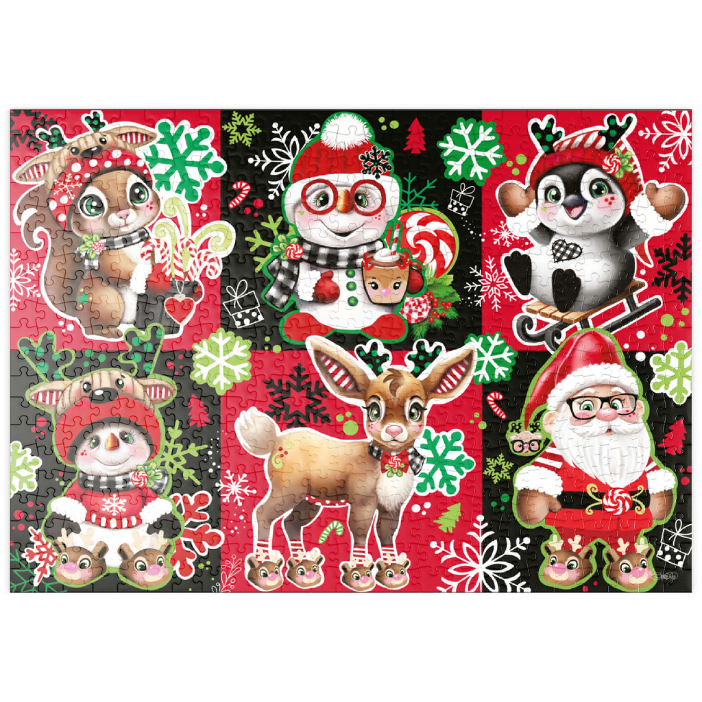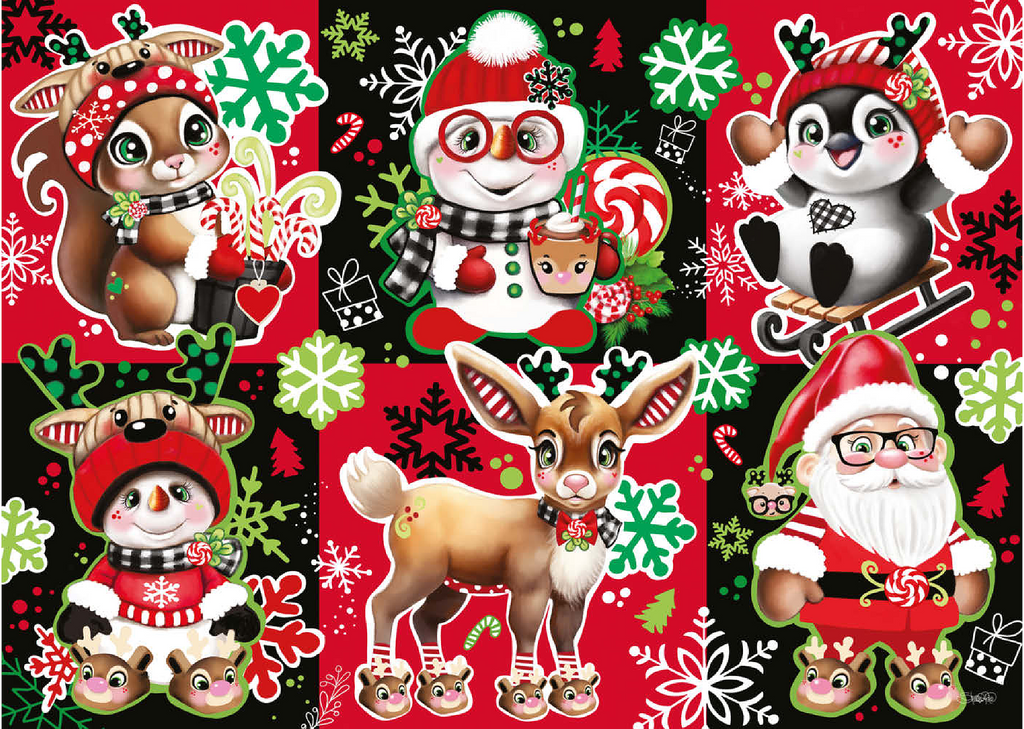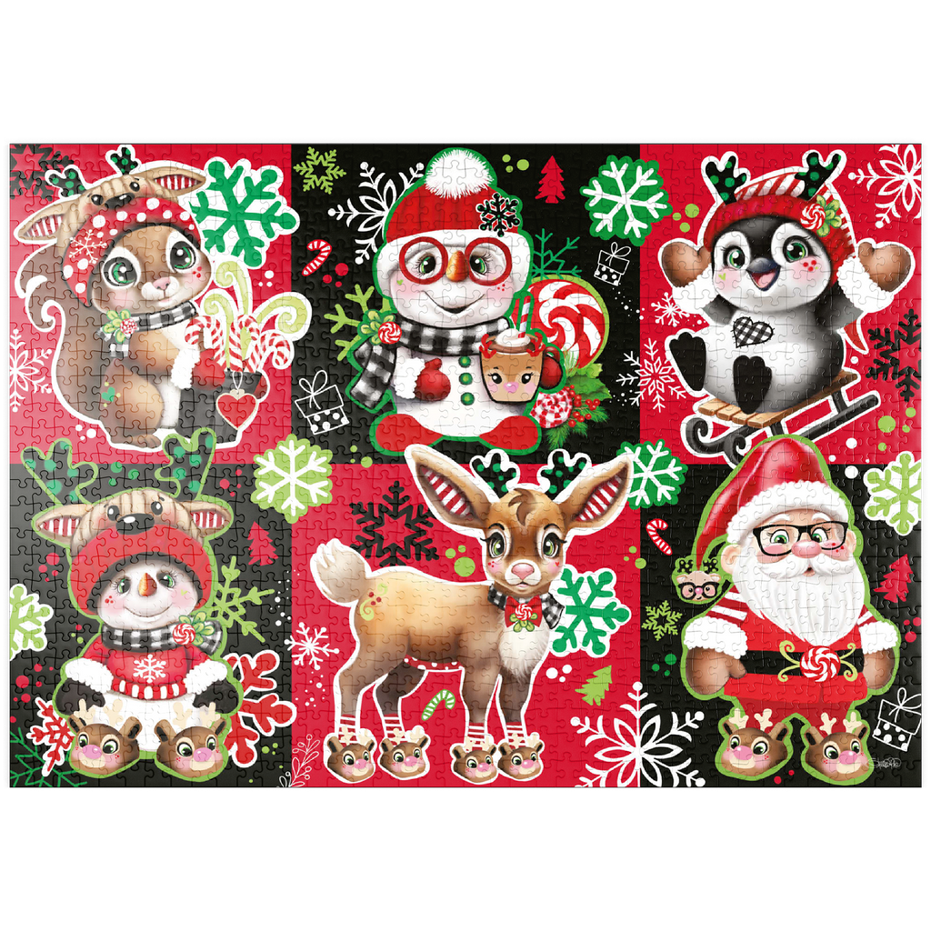 Bringen Sie Weihnachtsstimmung in Ihr Zuhause mit diesem bezaubernden Weihnachts-Charakter-Collagenpuzzle von Sheena Pike, das Puzzelfans jeden Alters begeistern wird. Mit seiner lebhaften und festlichen Farbpalette aus Rot, Grün, Schwarz und Weiß zeigt dieses Puzzle eine entzückende Sammlung von Weihnachtsfiguren – darunter der Weihnachtsmann, fröhliche Waldtiere, Schneemänner und vieles mehr. Jede Figur ist in einem herzerwärmenden Stil illustriert und von Schneeflocken, Zuckerstangen und saisonalen Mustern umgeben, die die Magie von Weihnachten heraufbeschwören. Ob allein oder mit der Familie – dieses Puzzle bietet Spaß und Entspannung zugleich und ist somit eine perfekte Beschäftigung für gemütliche Wintertage oder ein liebevolles Geschenk während der Weihnachtszeit.