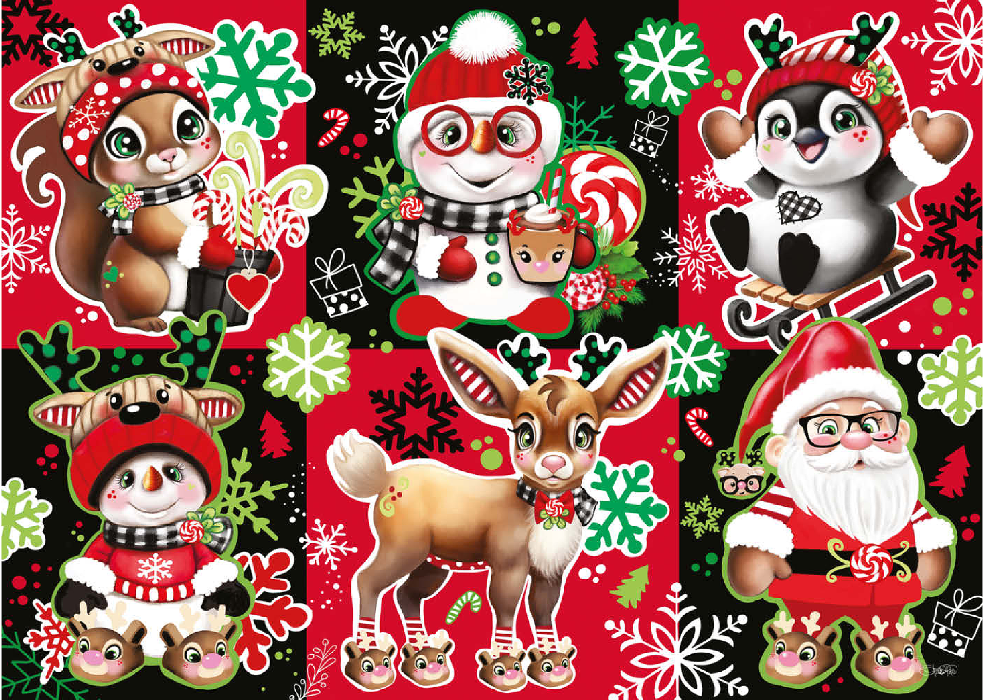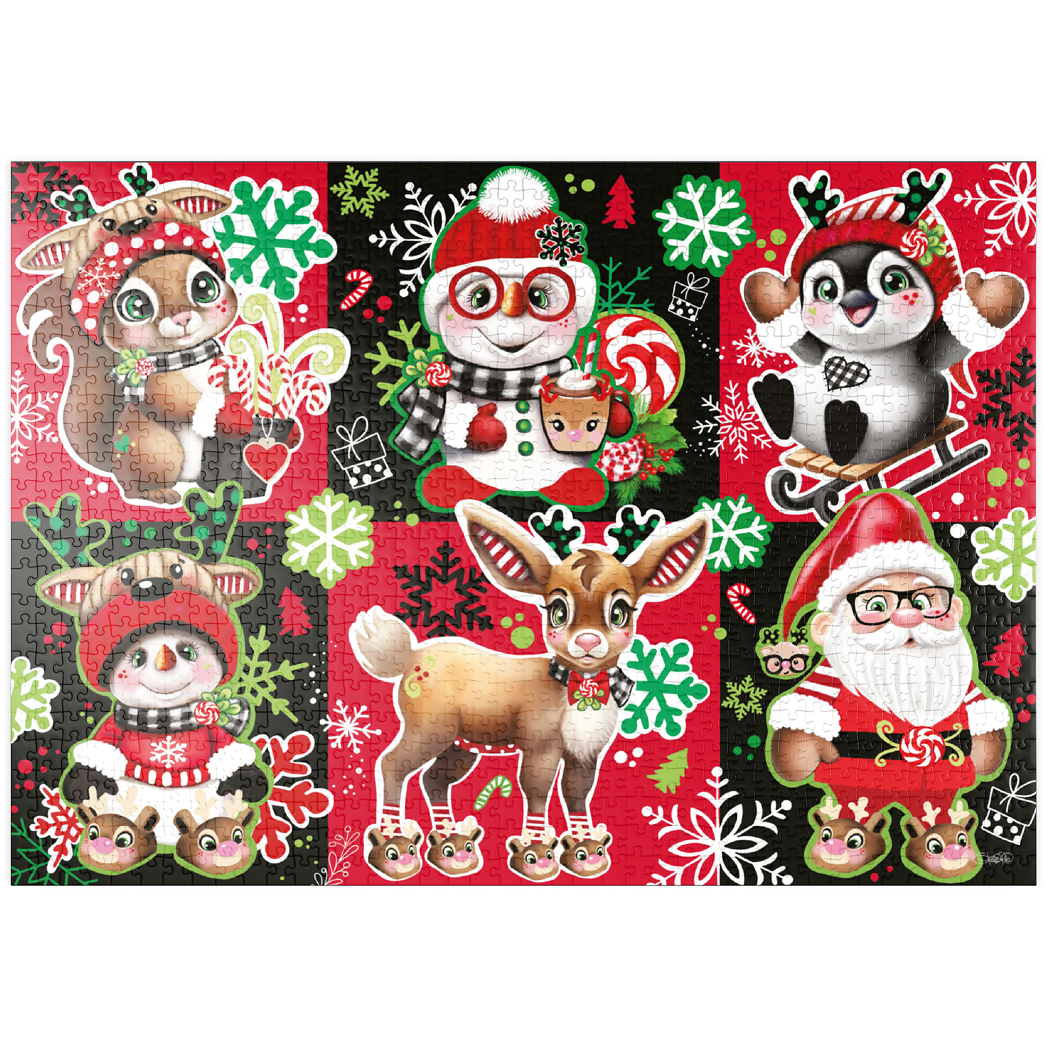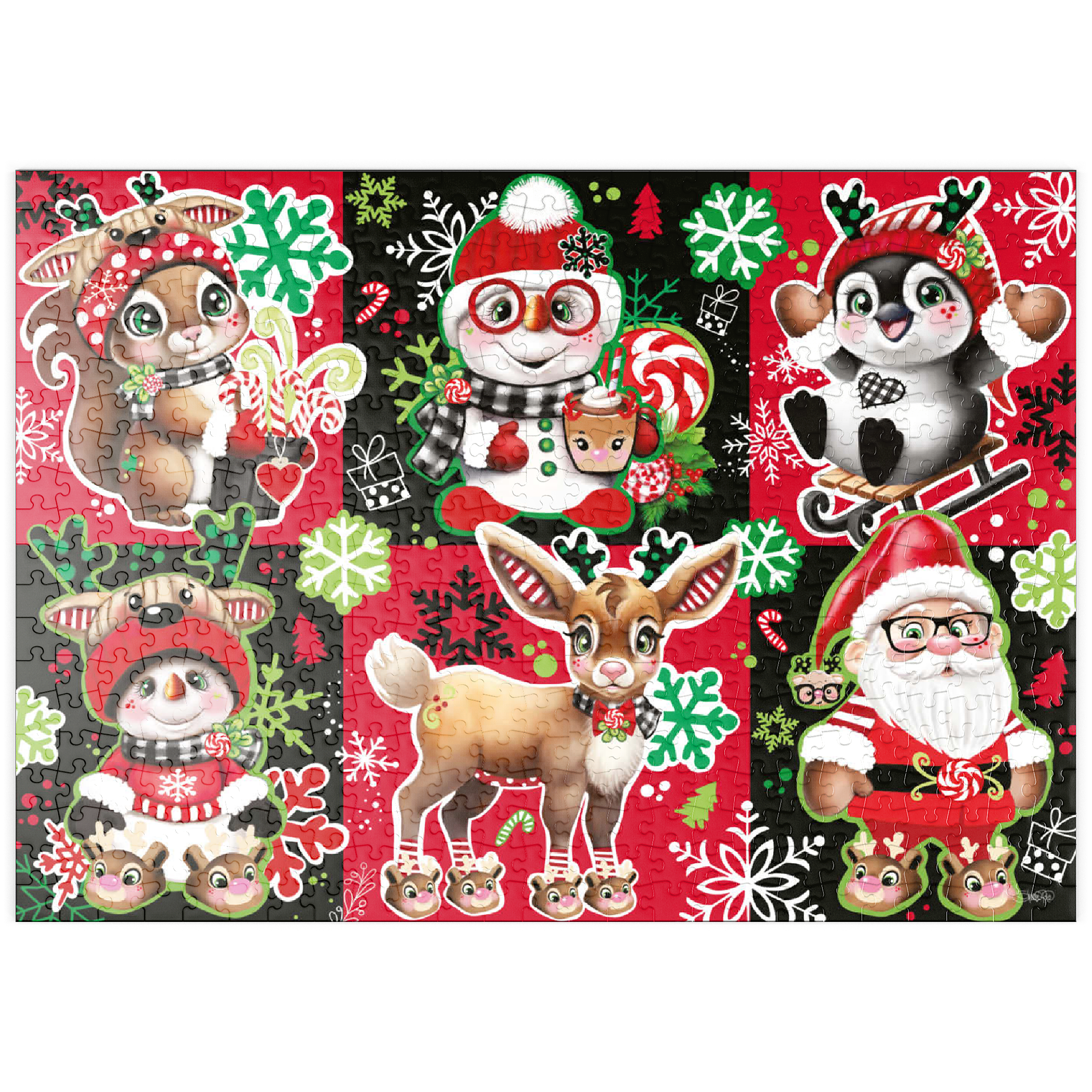 Bringen Sie Weihnachtsstimmung in Ihr Zuhause mit diesem bezaubernden Weihnachts-Charakter-Collagenpuzzle von Sheena Pike, das Puzzelfans jeden Alters begeistern wird. Mit seiner lebhaften und festlichen Farbpalette aus Rot, Grün, Schwarz und Weiß zeigt dieses Puzzle eine entzückende Sammlung von Weihnachtsfiguren – darunter der Weihnachtsmann, fröhliche Waldtiere, Schneemänner und vieles mehr. Jede Figur ist in einem herzerwärmenden Stil illustriert und von Schneeflocken, Zuckerstangen und saisonalen Mustern umgeben, die die Magie von Weihnachten heraufbeschwören. Ob allein oder mit der Familie – dieses Puzzle bietet Spaß und Entspannung zugleich und ist somit eine perfekte Beschäftigung für gemütliche Wintertage oder ein liebevolles Geschenk während der Weihnachtszeit.