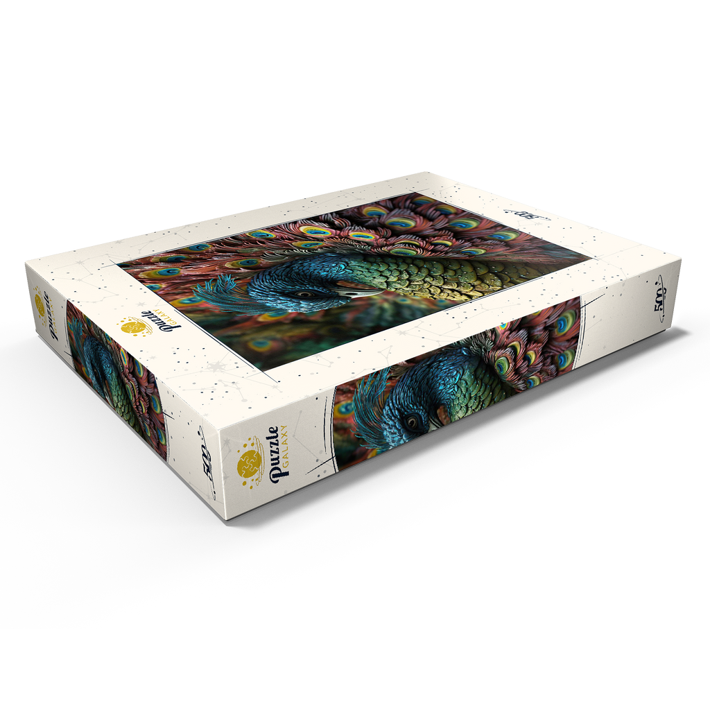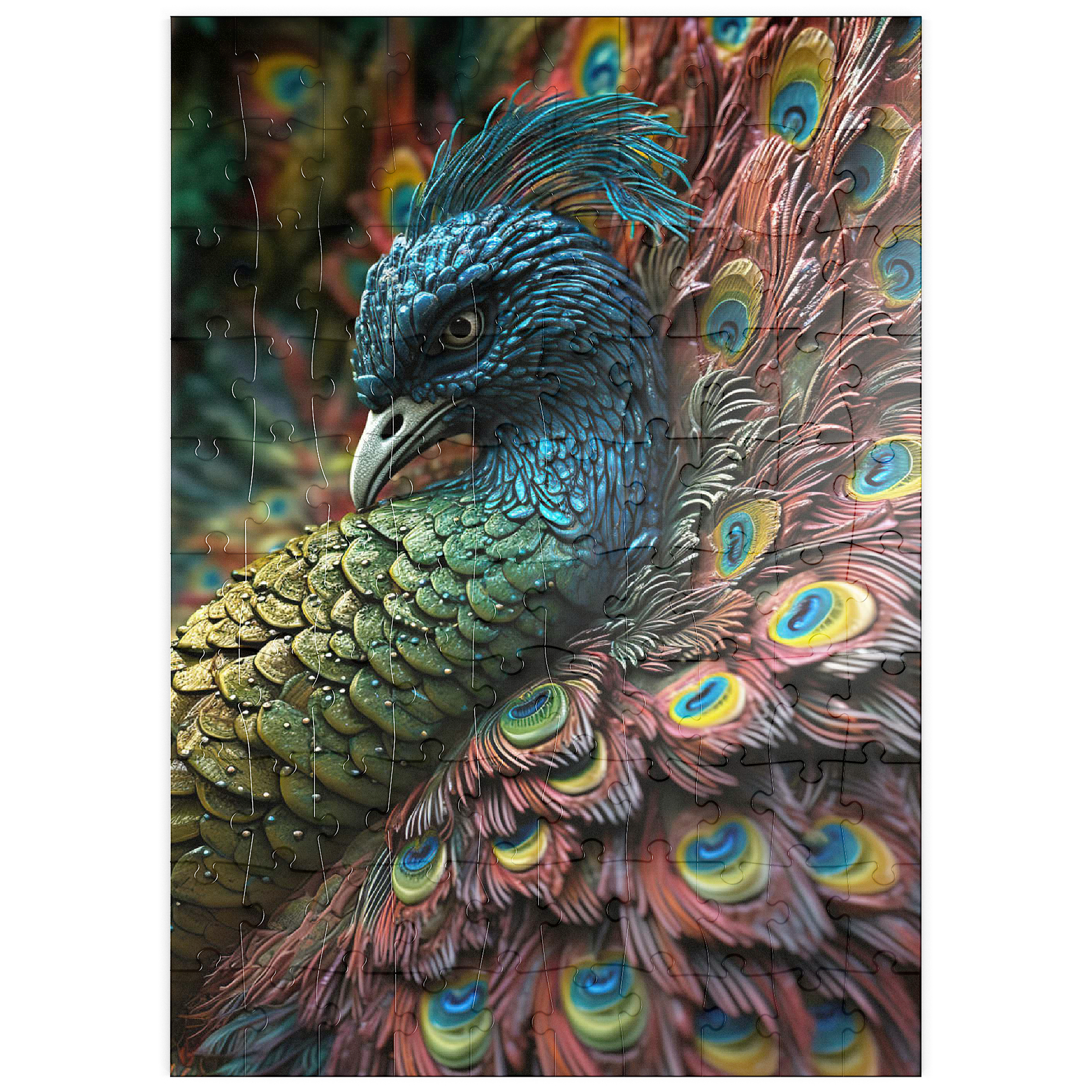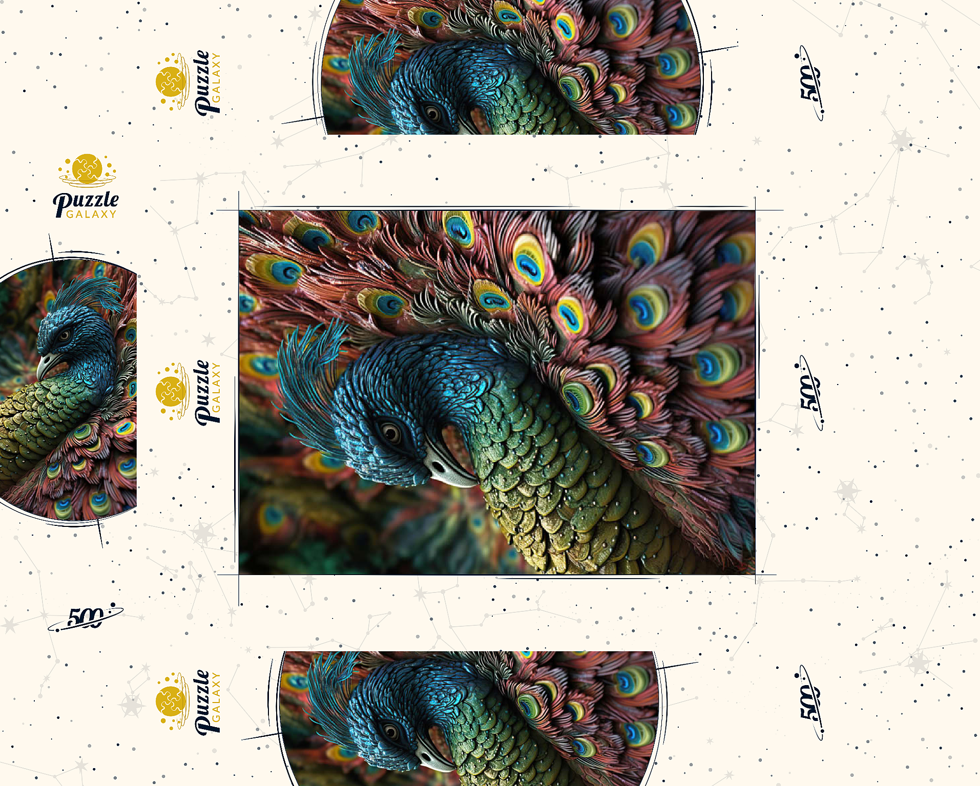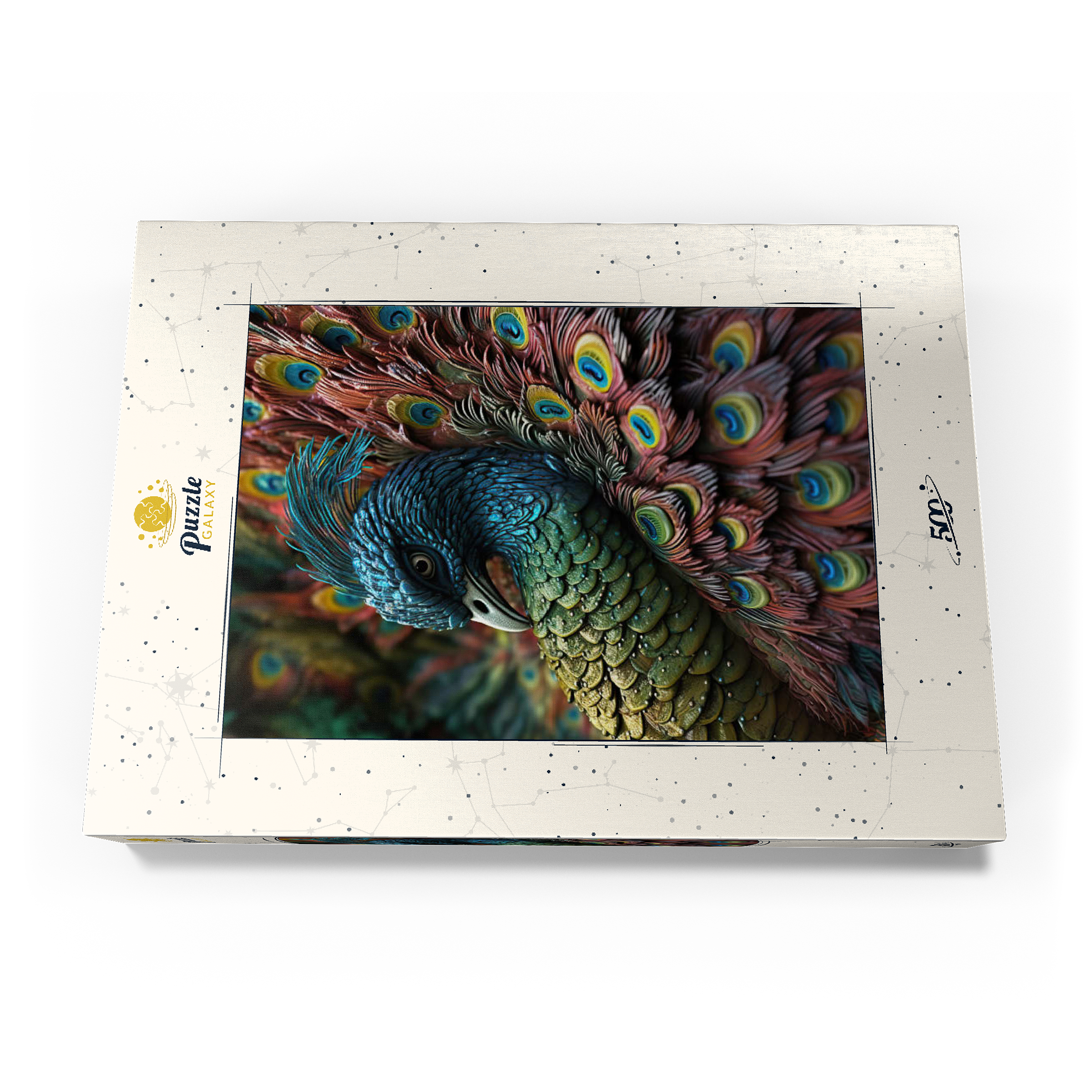 Dieses atemberaubende Kunstwerk zeigt einen majestätischen Pfau mit komplizierten, hochdetaillierten Federn, die in satten Farbtönen von tiefem Blau, Smaragdgrün und Bronzegold schimmern. Jede Feder ist sorgfältig gearbeitet und mit auffallend schillernden Augenflecken verziert, die die königliche und mystische Aura des Vogels noch verstärken. Der durchdringende Blick und die elegante Haltung des Pfaus strahlen Kraft und Anmut aus und machen dieses Stück zu einer atemberaubenden Verschmelzung von Fantasie und Realismus. Dieses Meisterwerk ist perfekt für Liebhaber exotischer Wildtiere, luxuriöser Texturen und komplizierter digitaler Kunst und fängt die Schönheit und Erhabenheit des extravagantesten Vogels der Natur ein.