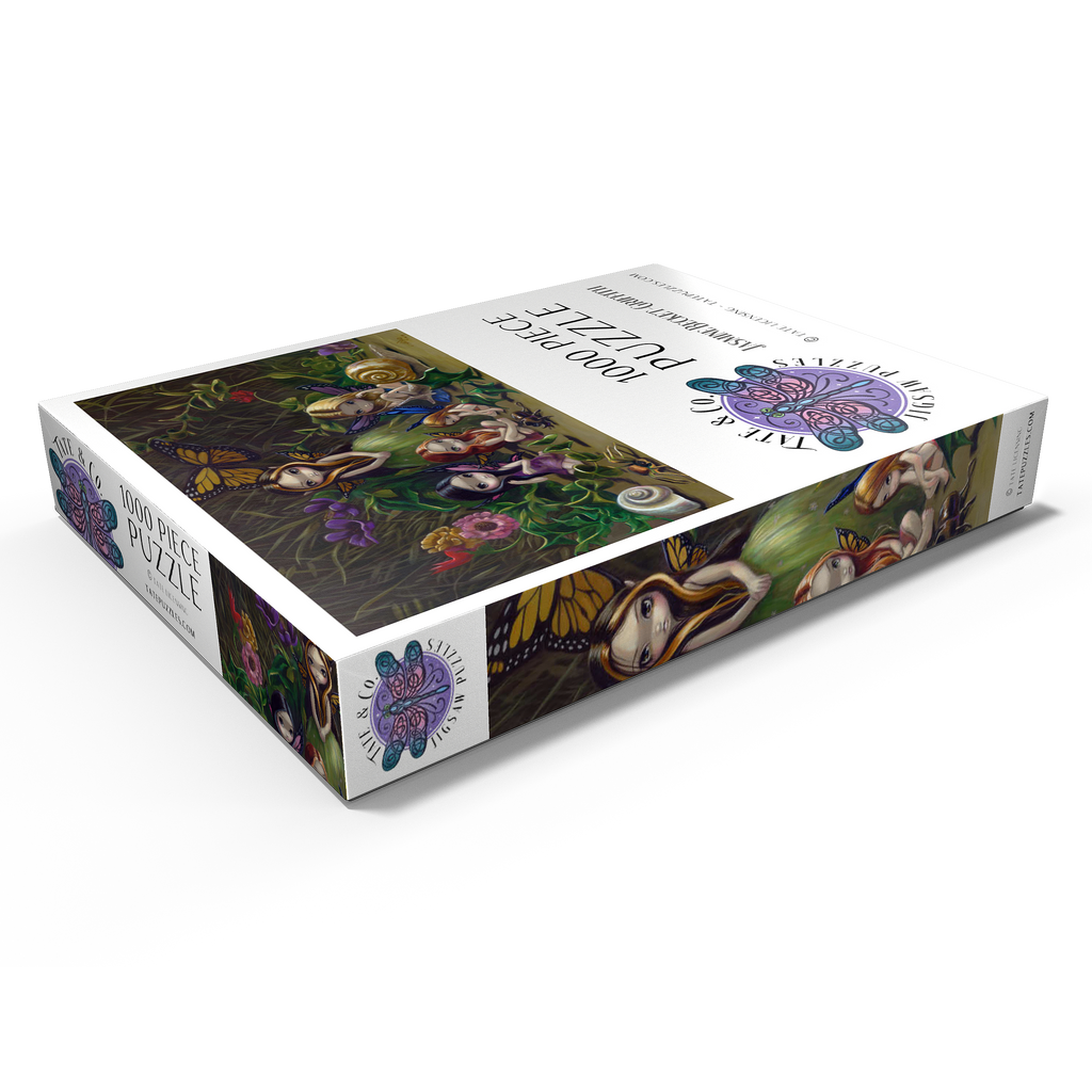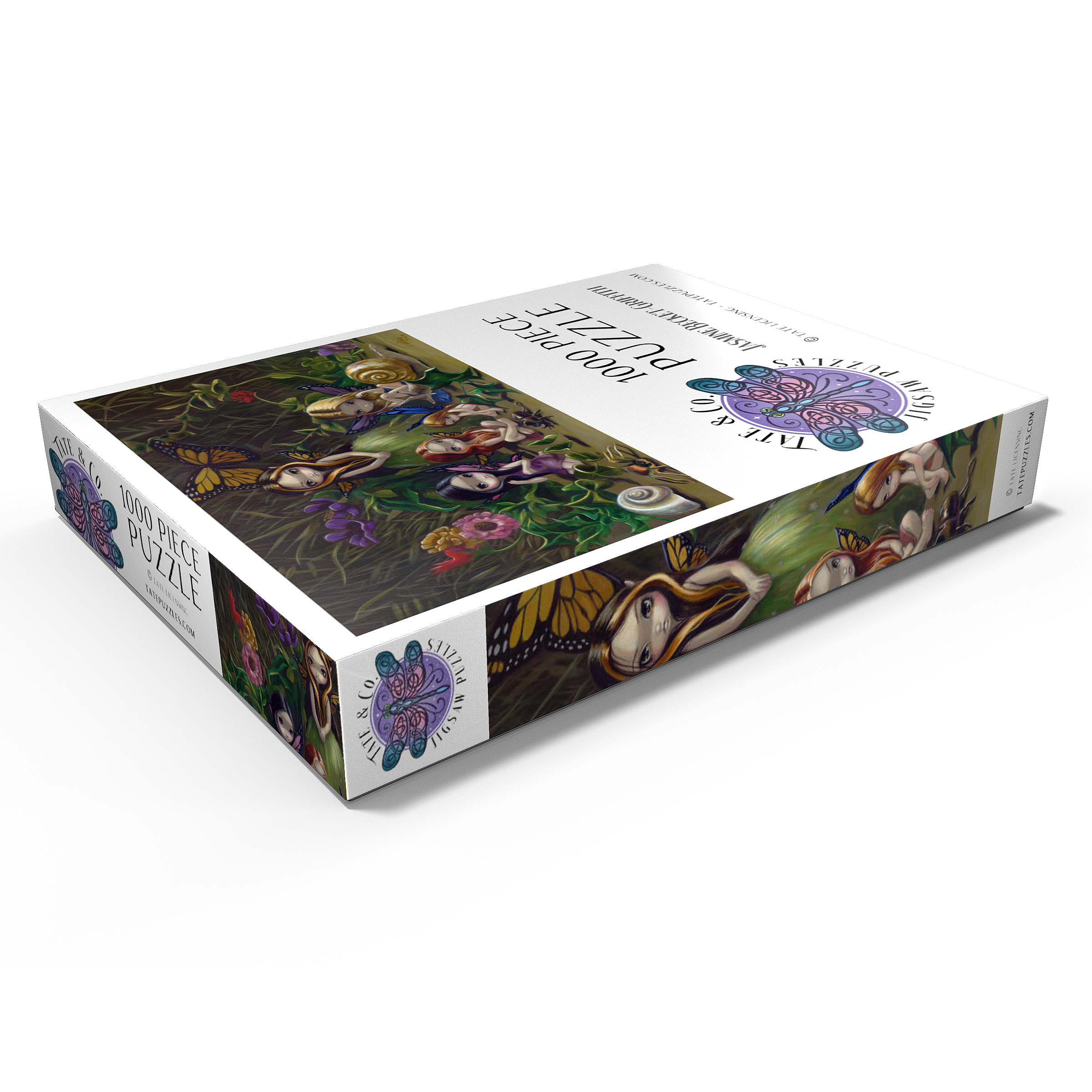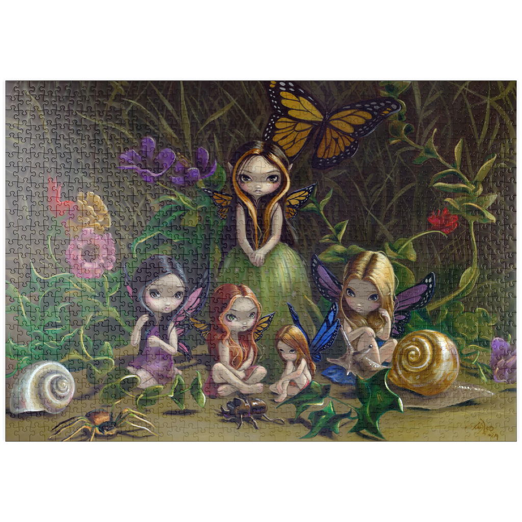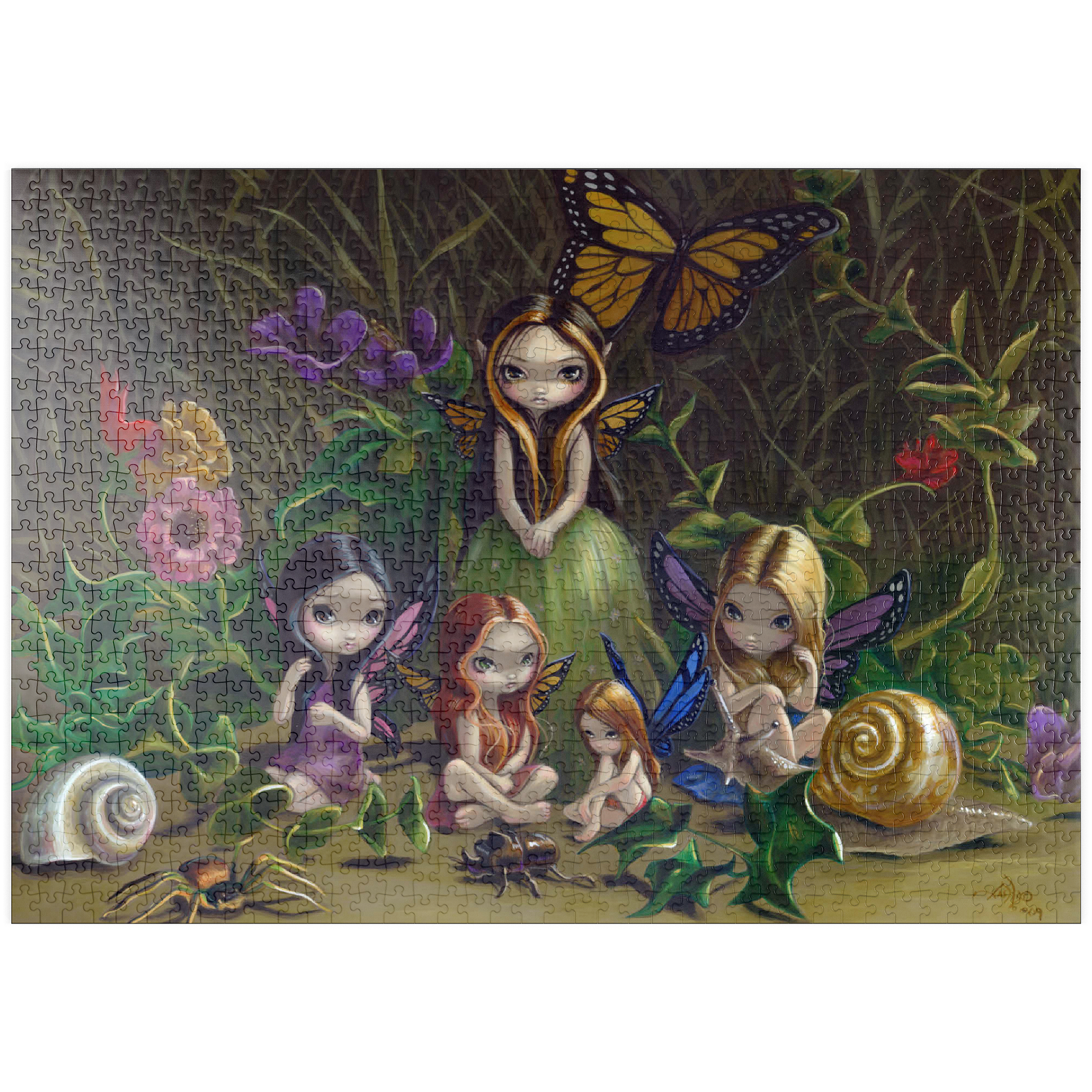 Stellen Sie eine friedliche Feenversammlung zusammen! Entdecken Sie eine ruhige Waldlichtung voller zarter Feen in allen Größen und ihre Insektengefährten: Schmetterlinge, Käfer und Spinnen. In dieser zauberhaften Szenerie blühen wunderschöne Blumen. Können Sie dieses friedliche Puzzle zusammensetzen und die Magie darin enthüllen? Perfekt für Liebhaber von Fantasy-Kunst!