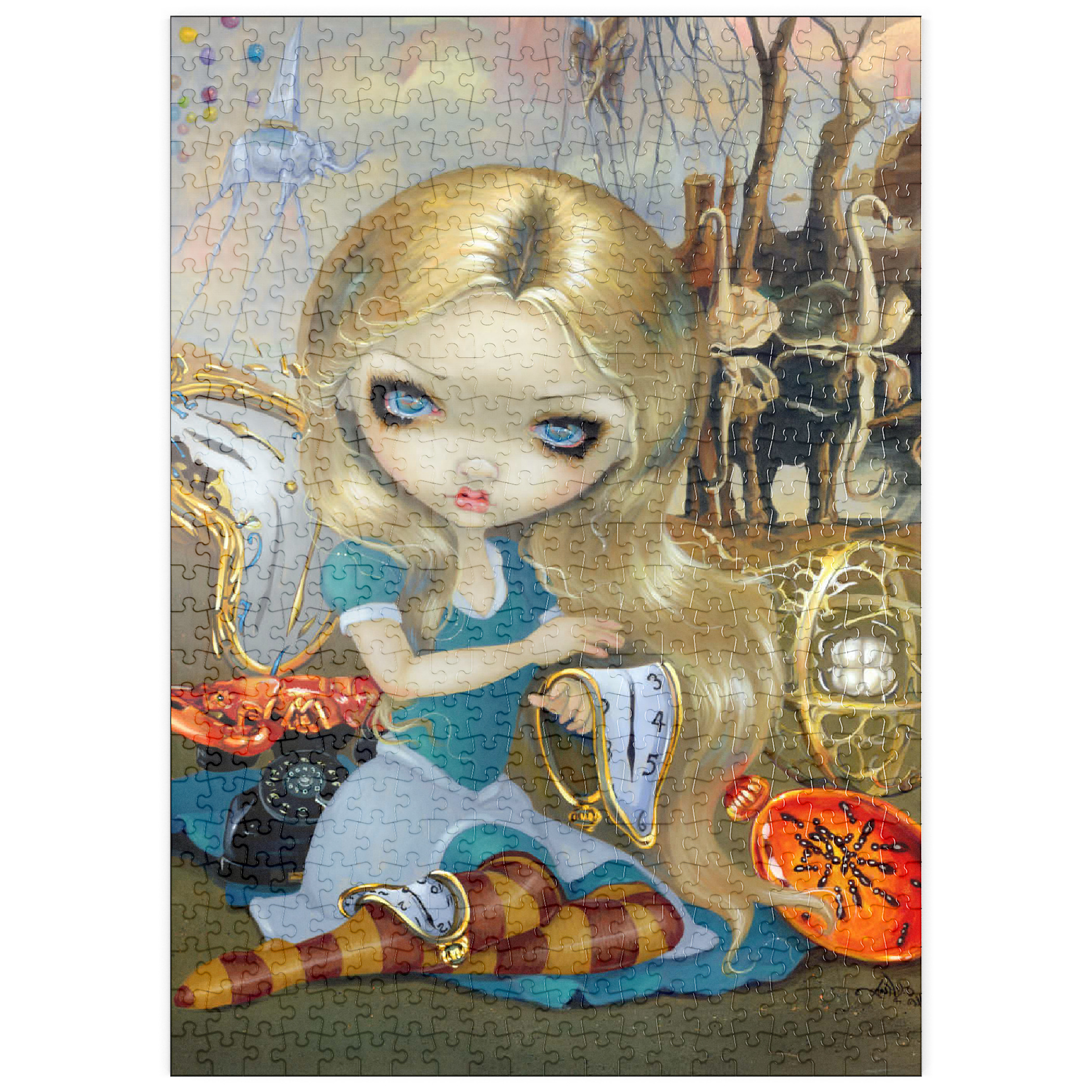 Reise in ein surreales Wunderland mit dem -Alice in a Dali Dream- Puzzle! Dieses fantastische Puzzle verbindet den Klassiker von Lewis Carroll mit den ikonischen Bildern von Salvador Dali. Setze schmelzende Uhren, auf Stelzen gehende Elefanten und andere Dali-eske Wunder zusammen, während Alice diese Traumlandschaft erkundet. Ein herausforderndes und skurriles Puzzle für Kunstliebhaber und Alice-Fans gleichermaßen. Teil der Serie -Alice in Other Lands-.