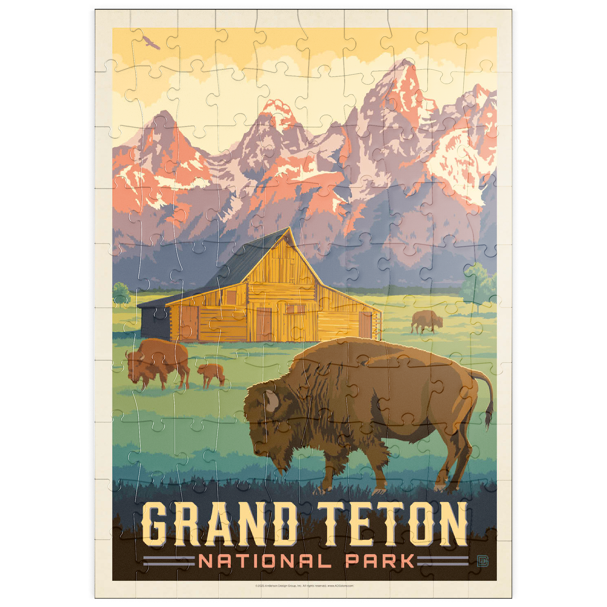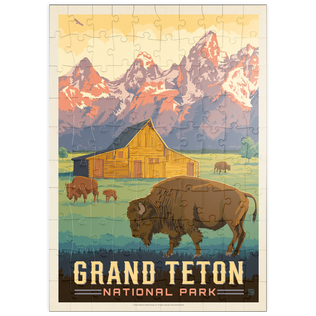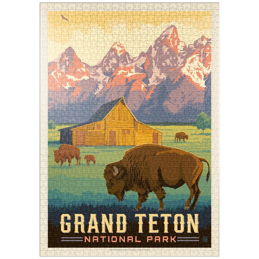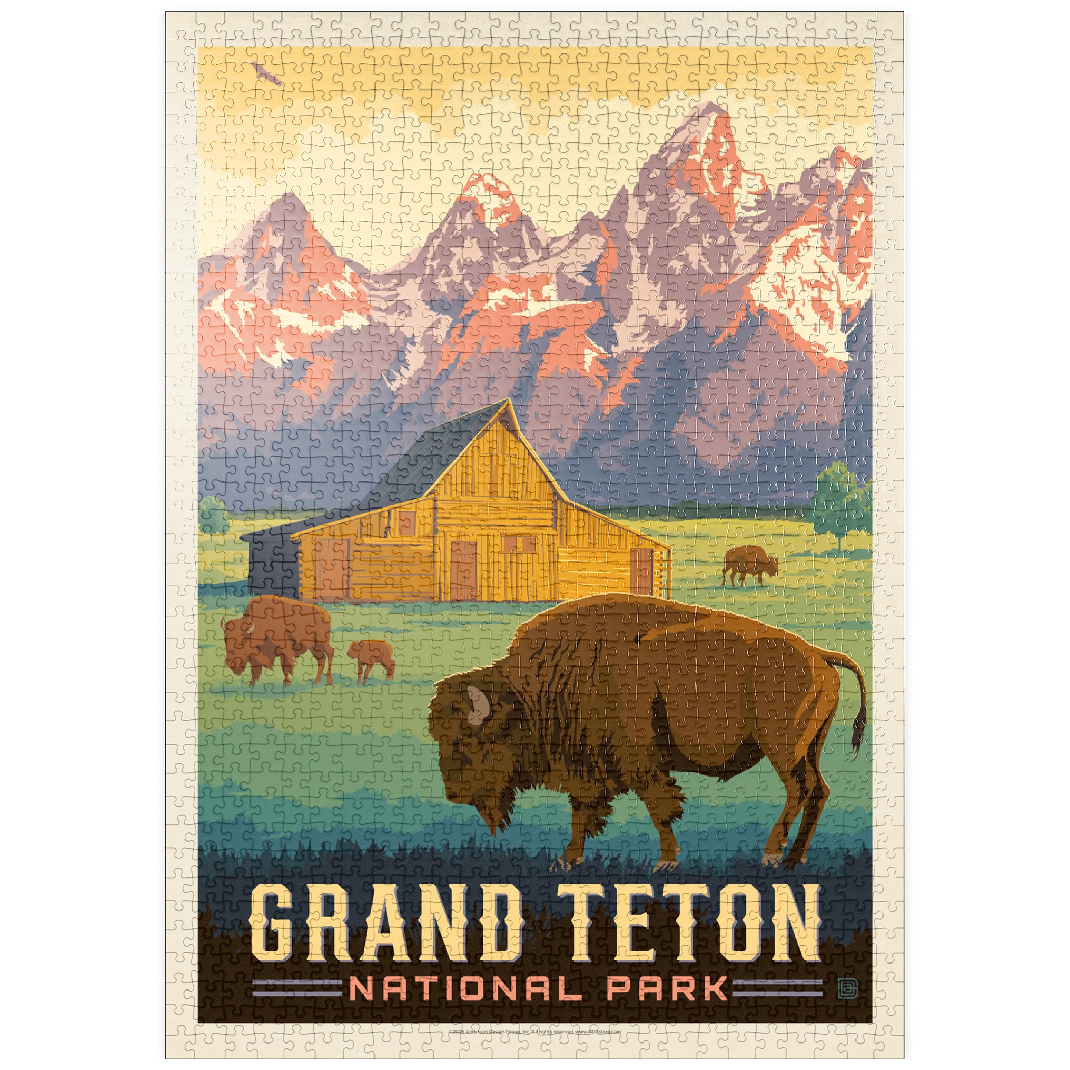 "Grand-Teton-Nationalpark: Bisons und Scheune, Vintage Poster" Puzzle
