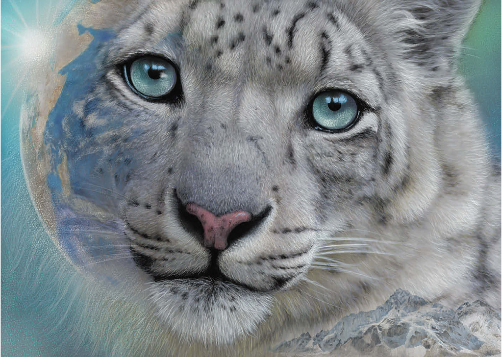 Der intensive blaugrüne Blick eines edlen Schneeleoparden lädt Sie ein, in seine Welt einzutauchen. Sein dichtes Fell lädt Sie dazu ein, es zu berühren. Die Illustration verdeutlicht auch, wie sehr das Schicksal des Schneeleoparden mit unserer Welt, unserem Planeten und seinem Ökosystem verflochten ist und wie sehr sie einander zum Überleben brauchen: Verflochtenes Schicksal – Schneeleoparden schützen, um unseren Planeten zu schützen: Unser Schicksal ist mit dem unserer natürlichen Welt verflochten. Durch die Zusammenarbeit mit lokalen Gemeinschaften zum Schutz des Schneeleoparden, einer Schlüsselart des hochalpinen Ökosystems Zentralasiens, tragen wir dazu bei, die Artenvielfalt der Tier- und Pflanzenwelt zu erhalten, die für die Gesundheit und Stabilität des Ökosystems wichtig ist. Laurie Prindles „Verflochtenes Schicksal” erinnert uns daran, wie wichtig der Schutz der Natur und der Tiere, die unsere Welt mit uns teilen, für unser Bestreben ist, unseren Planeten vor der Zerstörung zu bewahren.
