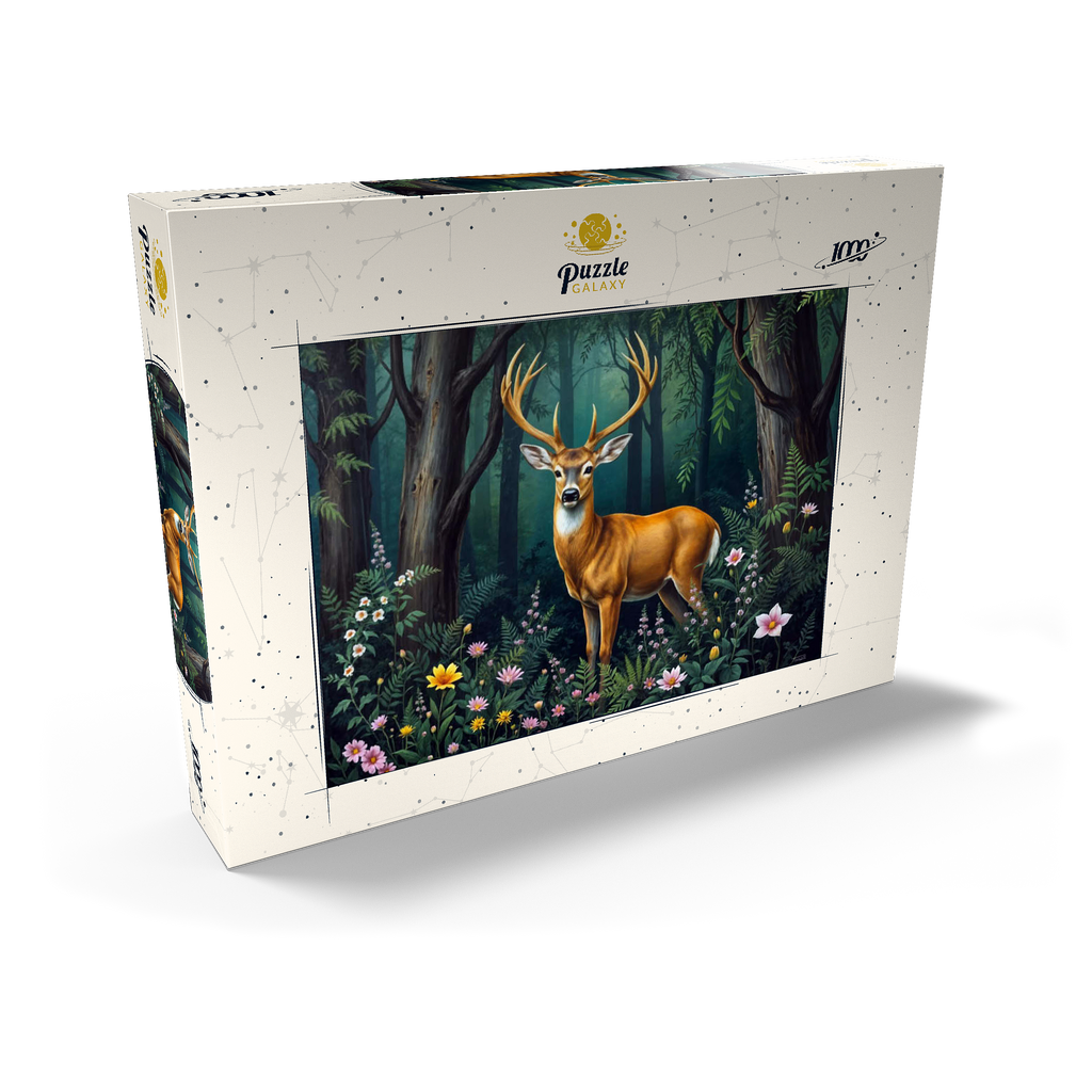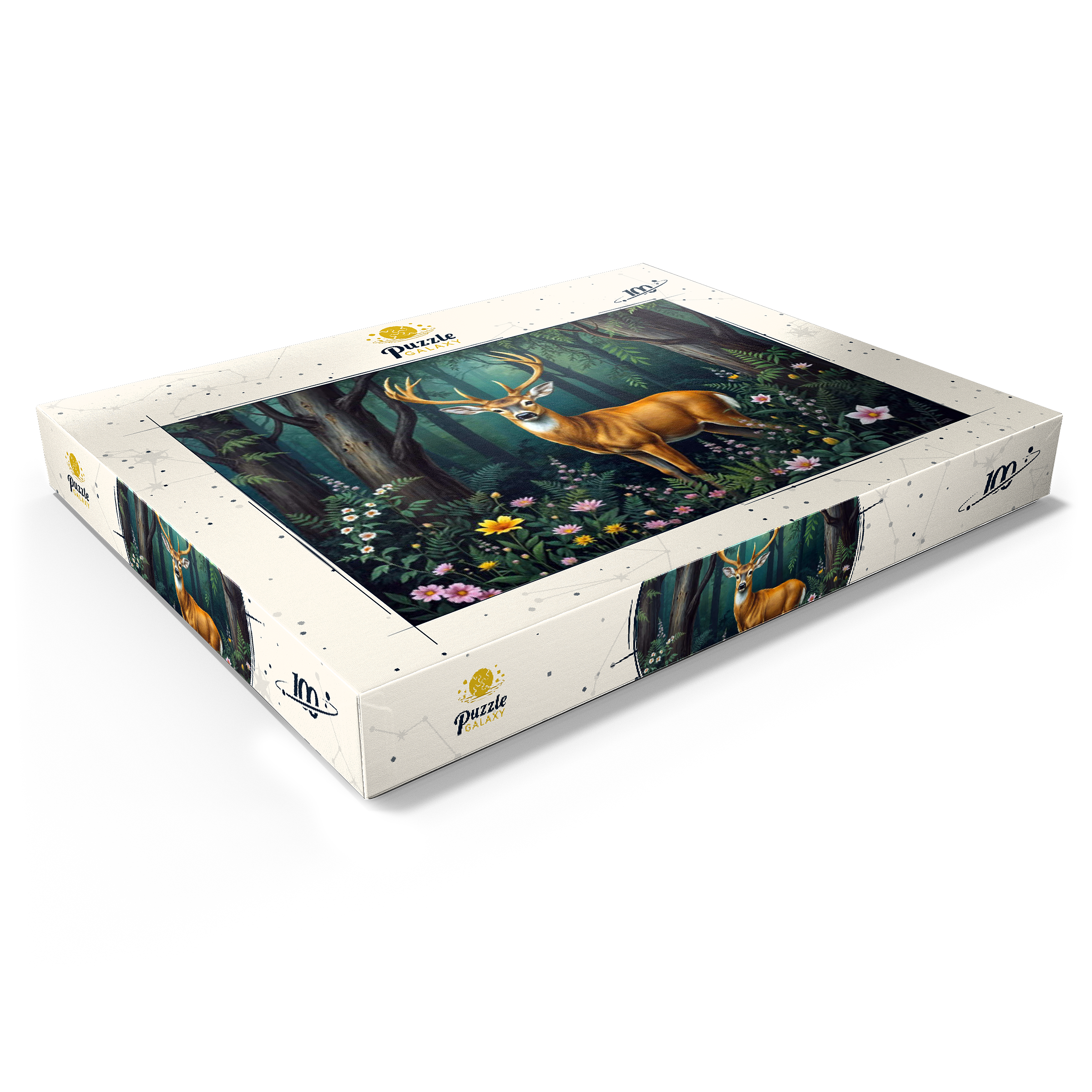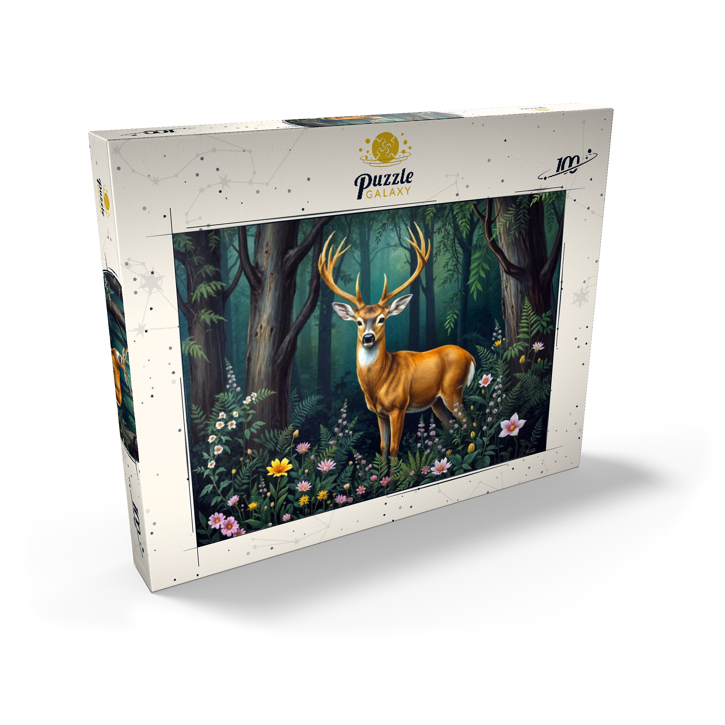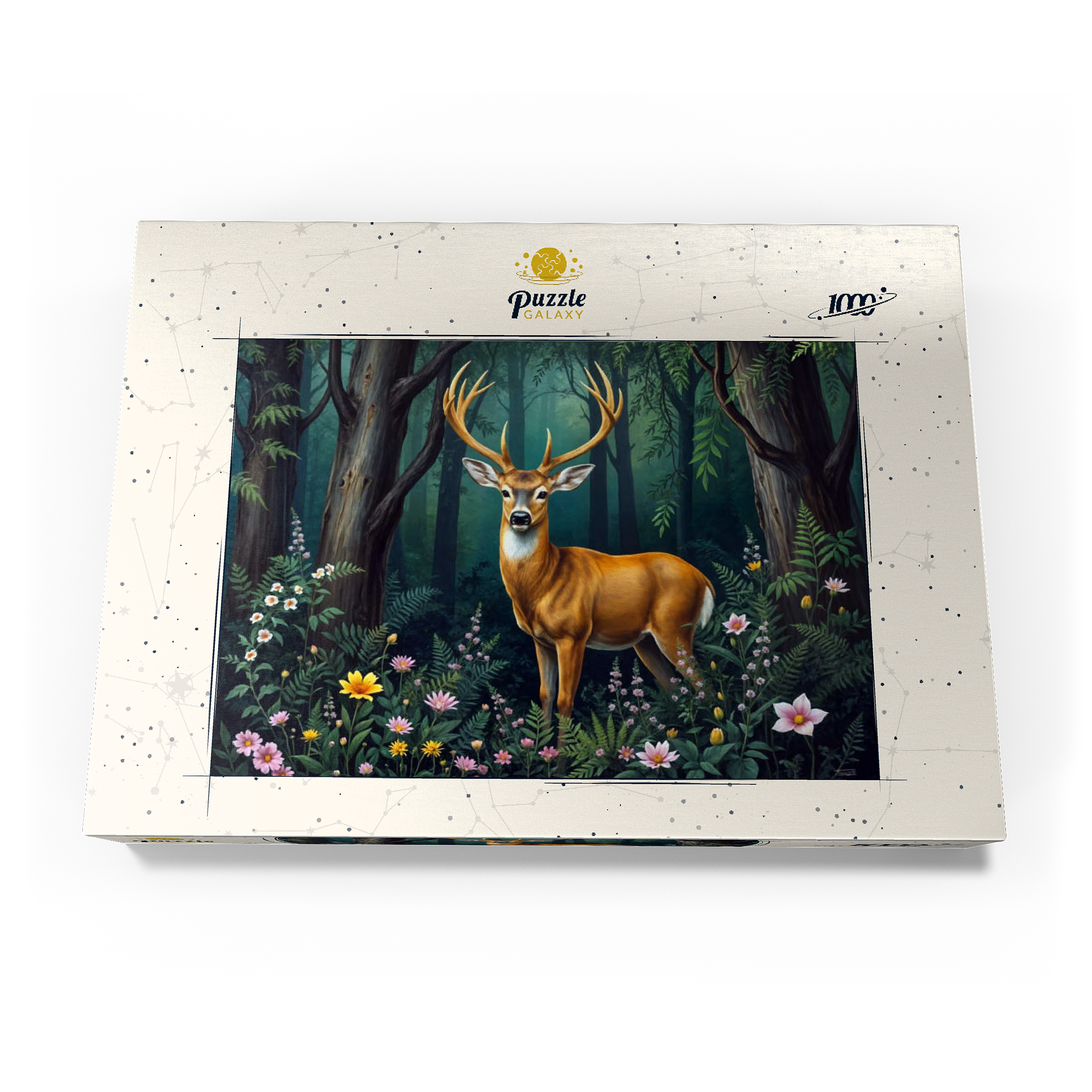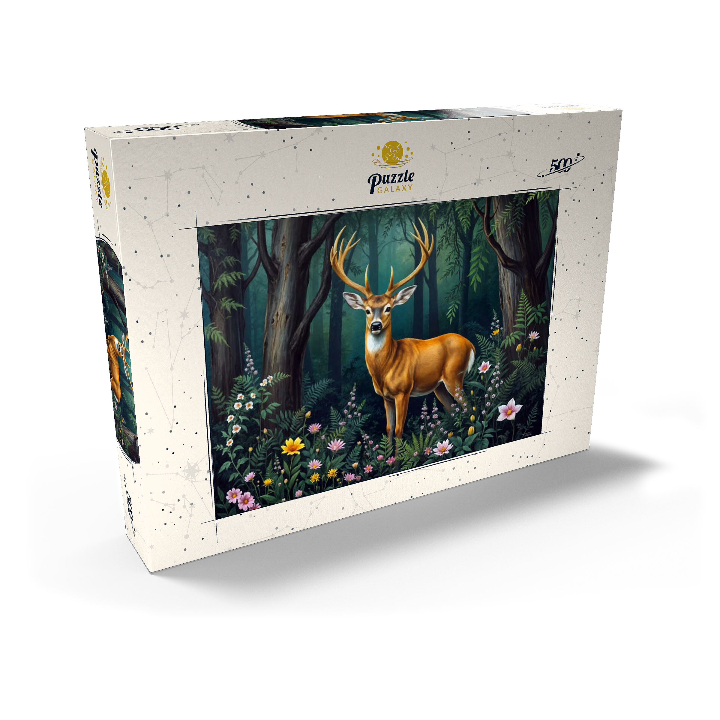 Majestätischer Hirsch in einem ruhigen Wald mit Wildblumen