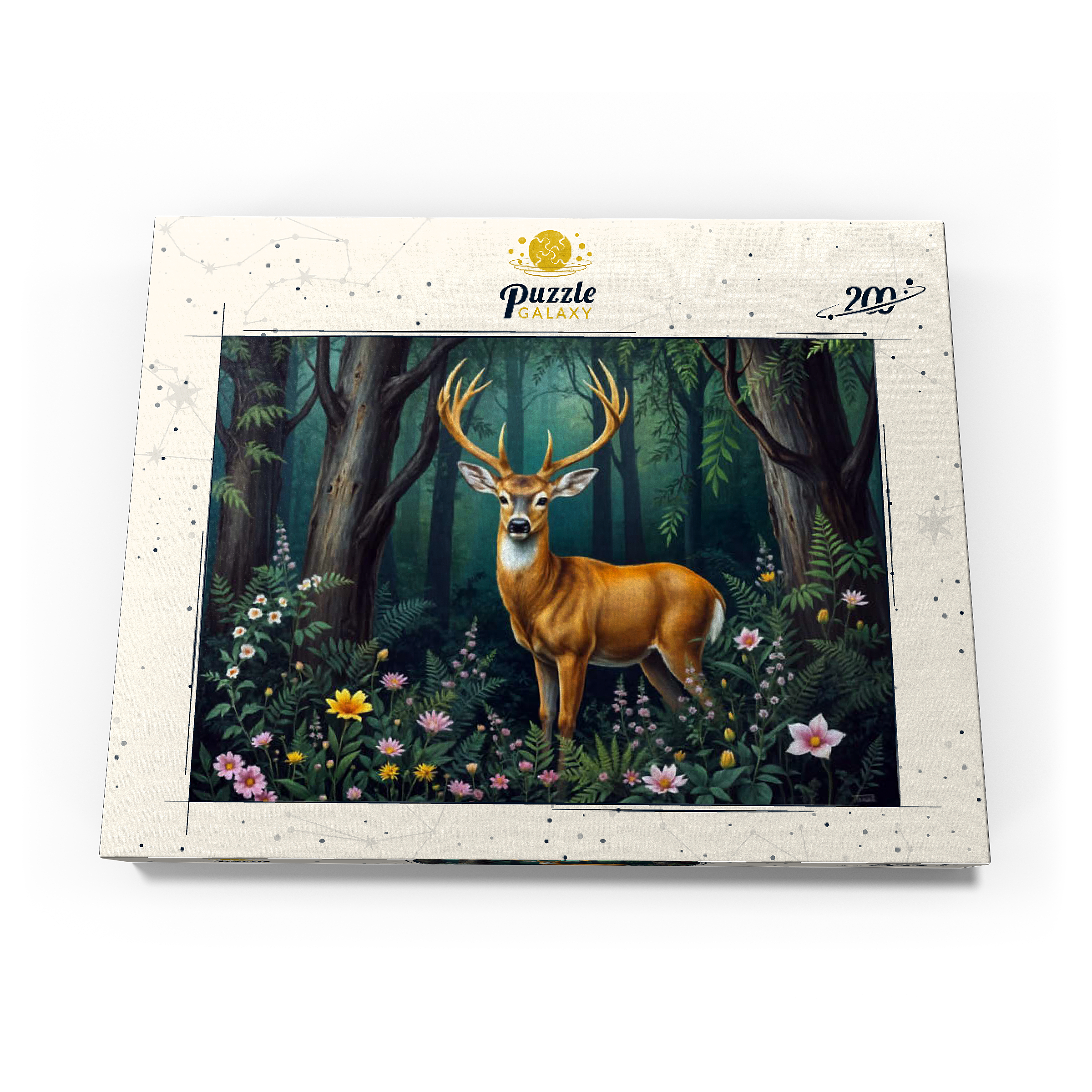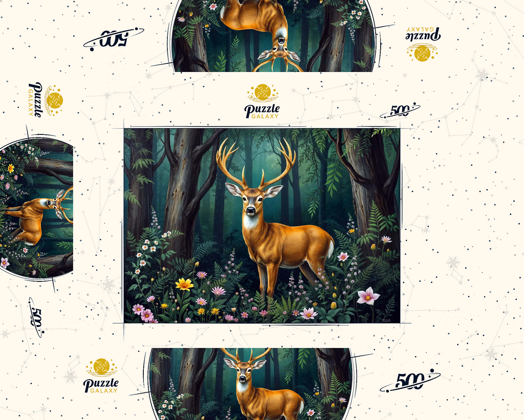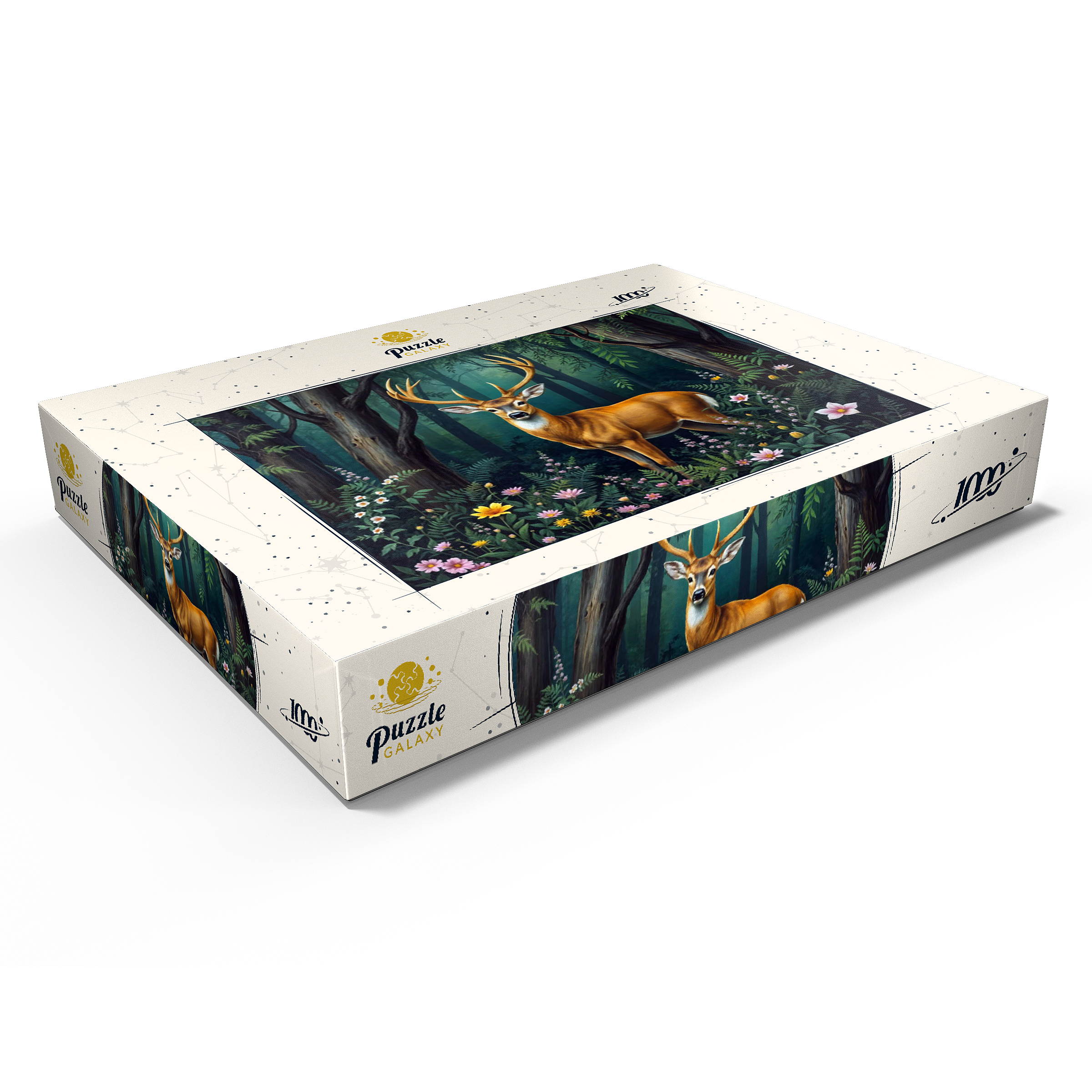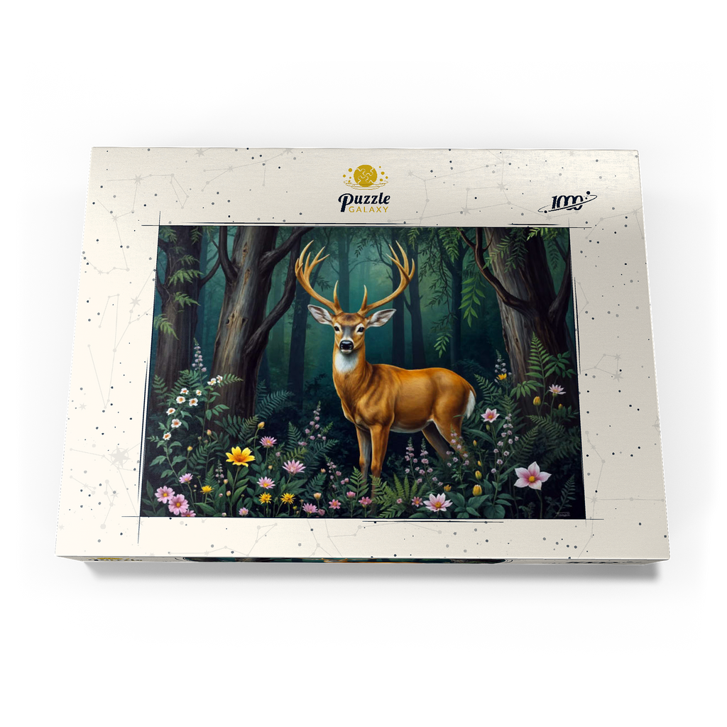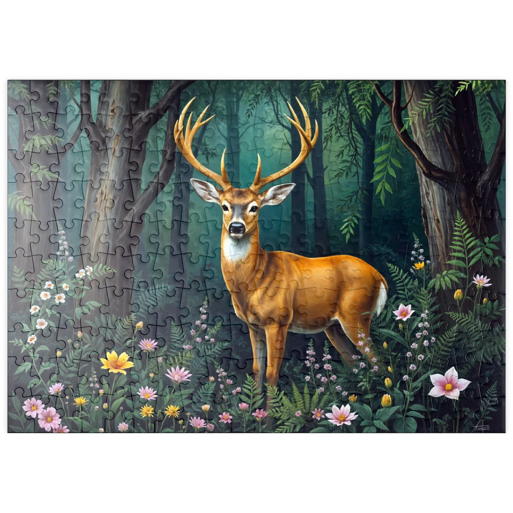 Majestätischer Hirsch in einem ruhigen Wald mit Wildblumen