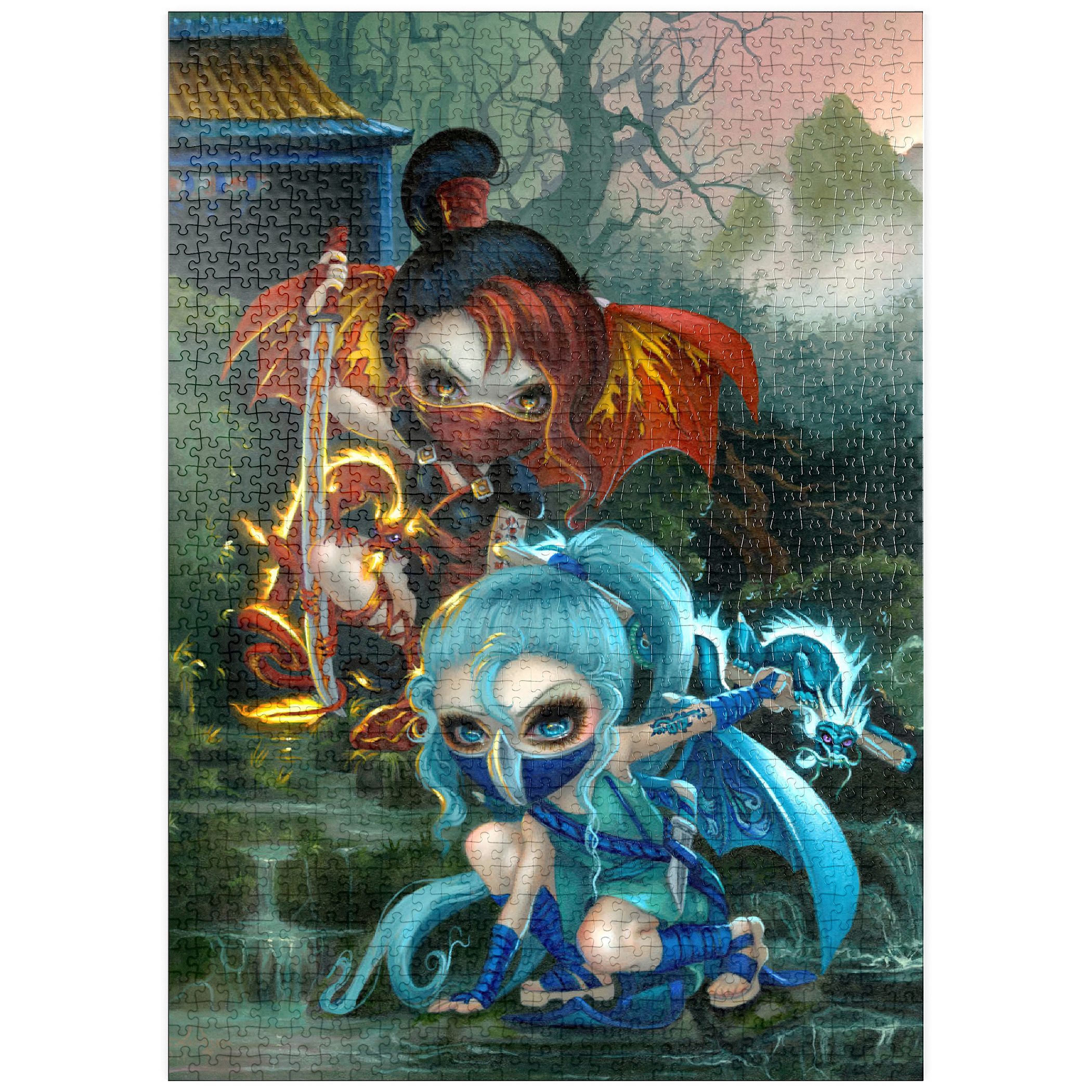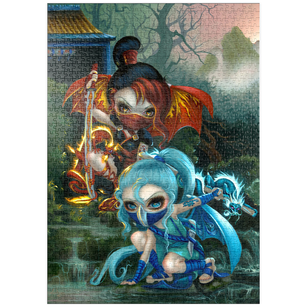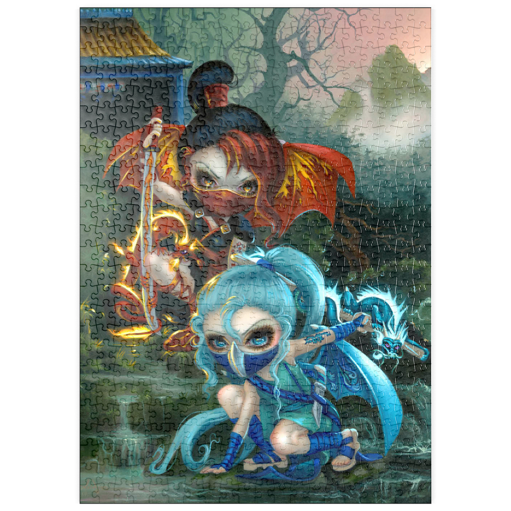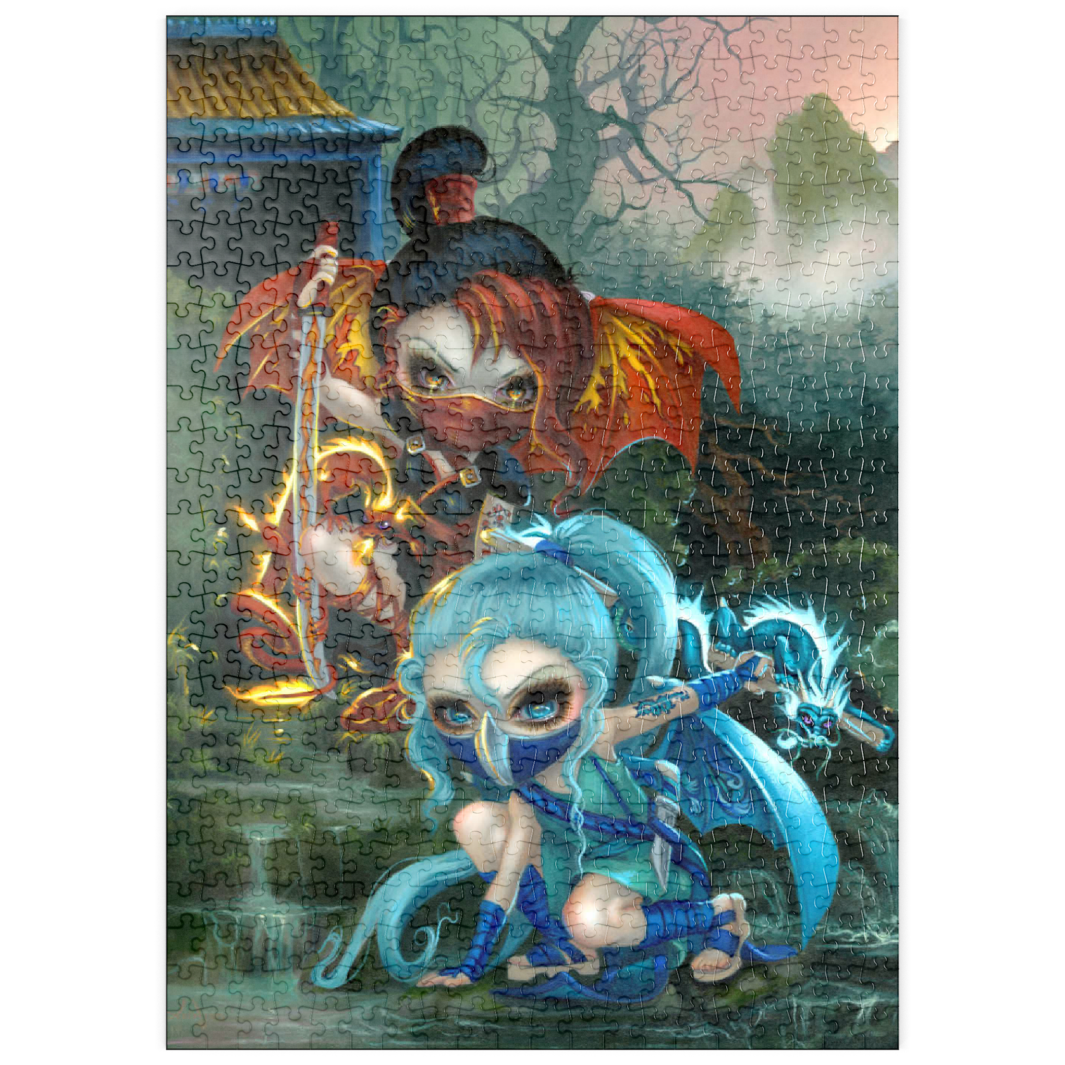 Entfesseln Sie die Ninja-Drachenbabys in einem fesselnden Puzzle! Stellen Sie Yuriko, die Feuer-Ninja, und Izumi, die Wasser-Ninja, inmitten einer atemberaubenden, asiatisch inspirierten Berg- und Wasserfallkulisse zusammen. Diese niedlichen, aber heimlichen Drachenbabys sind zusammen mit ihren leuchtenden Haustierdrachen abgebildet. Setzen Sie dieses einzigartige Fantasy-Abenteuer zusammen!