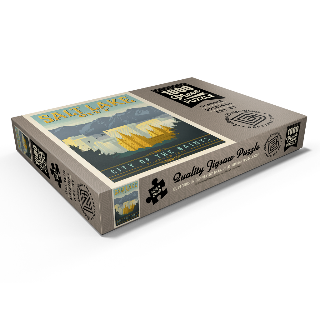 Salt Lake City, die Hauptstadt von Utah, ist für ihre atemberaubende Naturlandschaft bekannt, die von den Rocky Mountains eingerahmt wird. Das Kunstwerk zeigt den ikonischen Salt-Lake-Tempel, eines der bekanntesten Wahrzeichen der Stadt, mit modernen Wolkenkratzern im Hintergrund. Die 1847 von Siedlern gegründete -Stadt der Heiligen- ist heute ein kulturelles und spirituelles Zentrum. Besucher können eine einzigartige Mischung aus Architektur, Geschichte und malerischen Bergblicken genießen.