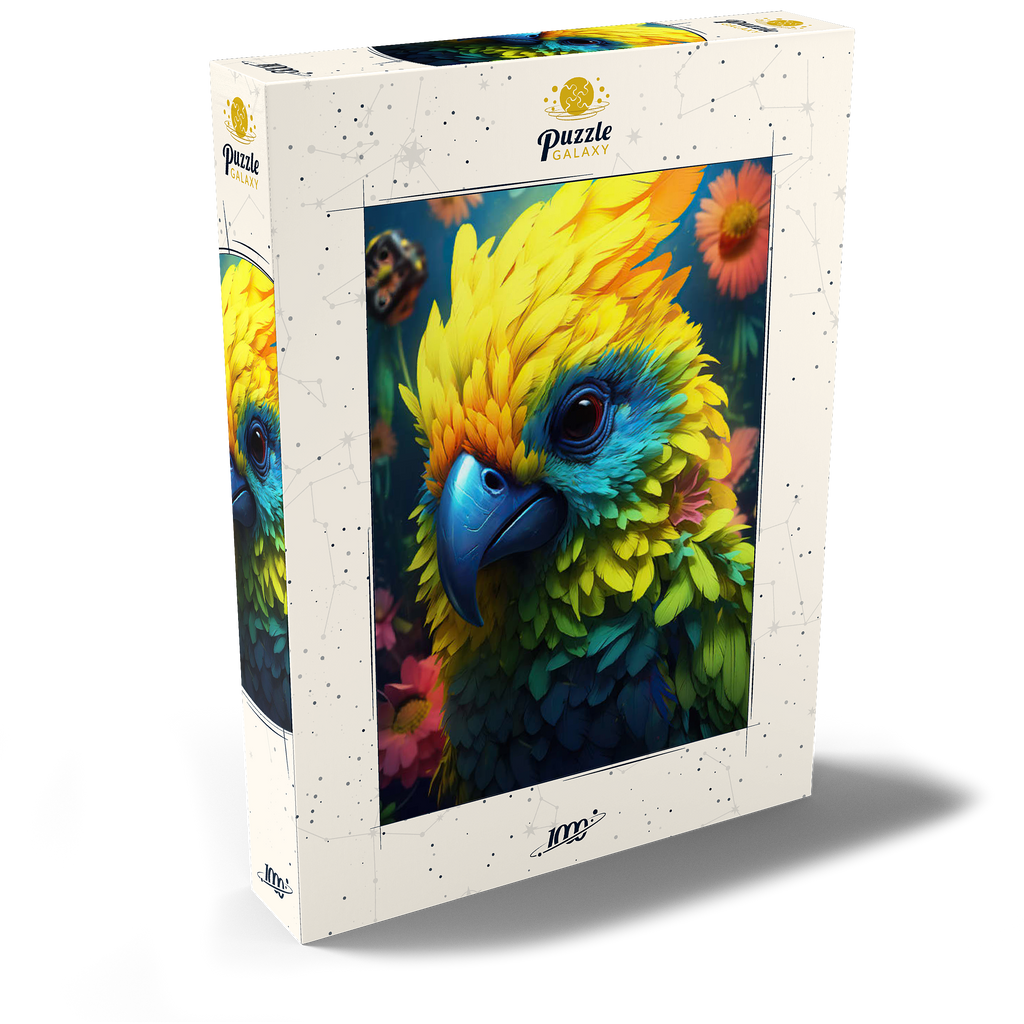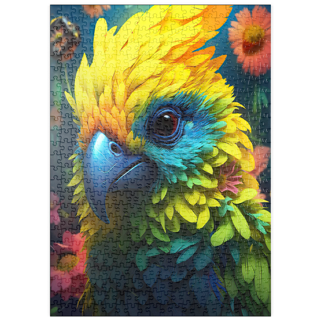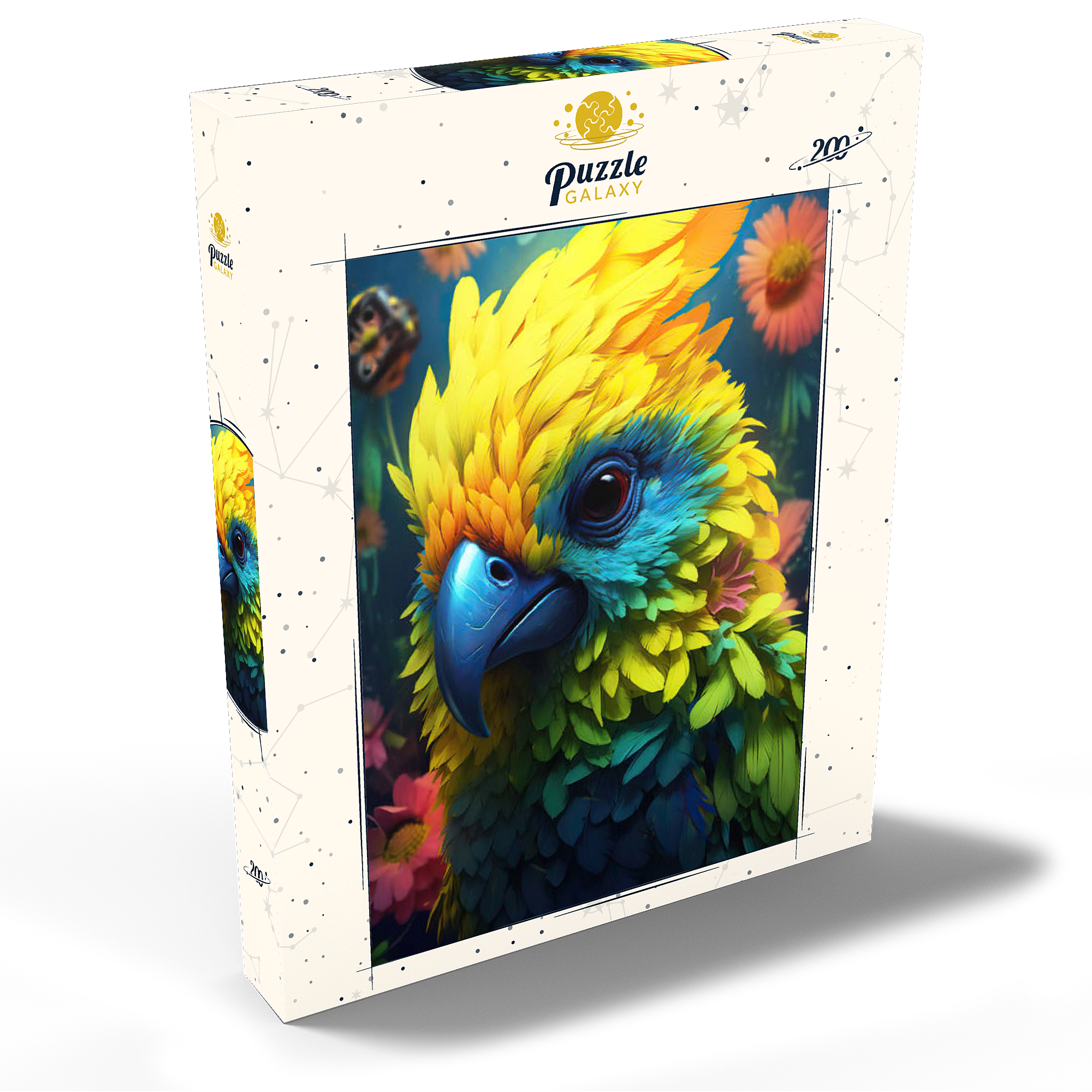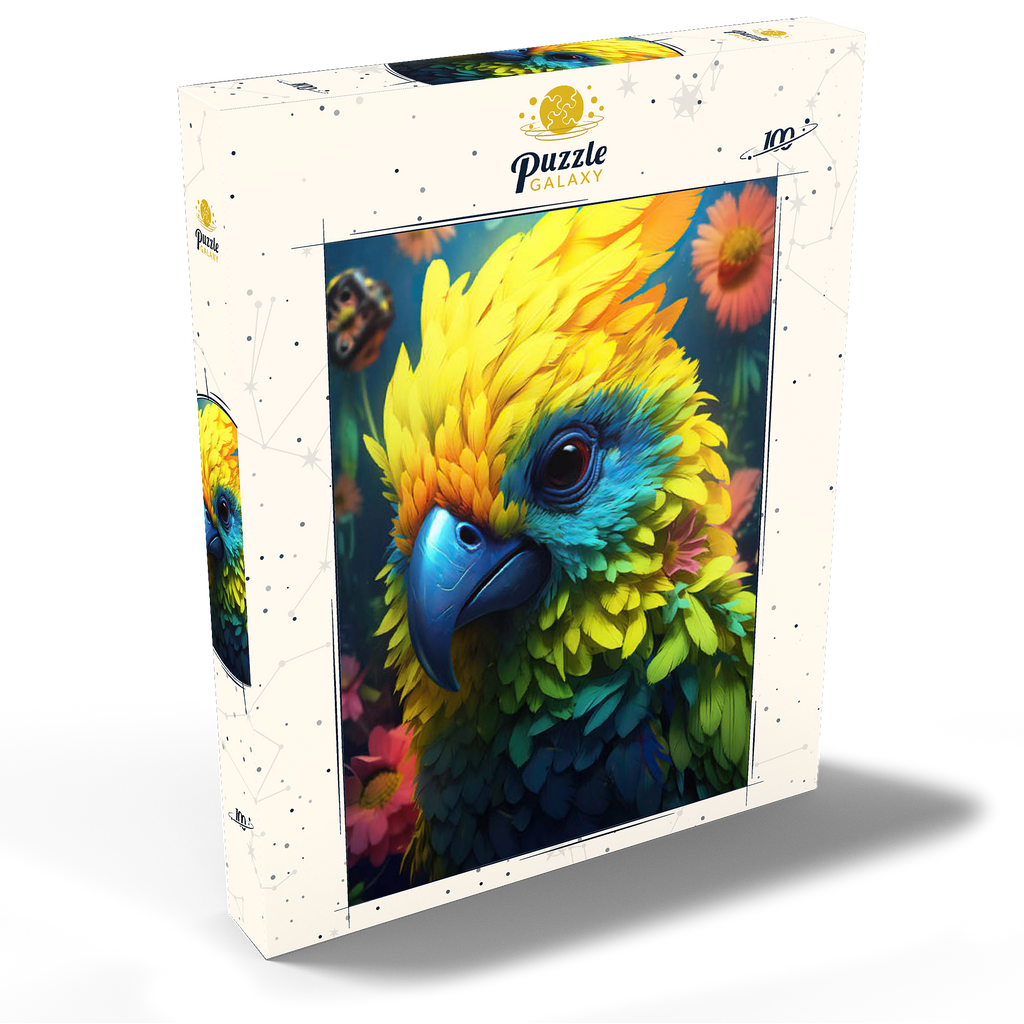 Erleben Sie die atemberaubende Schönheit dieses lebhaften tropischen Papageis, der mit auffälligen gelben, grünen und blauen Federn geschmückt ist. Die filigranen Details seines Gefieders sorgen für ein faszinierendes Farbenspiel, das durch den weichen Blumenhintergrund mit zarten Blüten in warmen, einladenden Tönen noch verstärkt wird. Der scharfe, metallische Schnabel und die stechenden Augen des Papageis verleihen ihm Tiefe und Realismus und machen ihn zu einem exquisiten Kunstwerk für Vogelliebhaber und Naturbegeisterte. Diese atemberaubende Darstellung fängt das Wesen der exotischen Tierwelt ein und verleiht jedem Raum einen Hauch von Wunder und tropischem Charme.