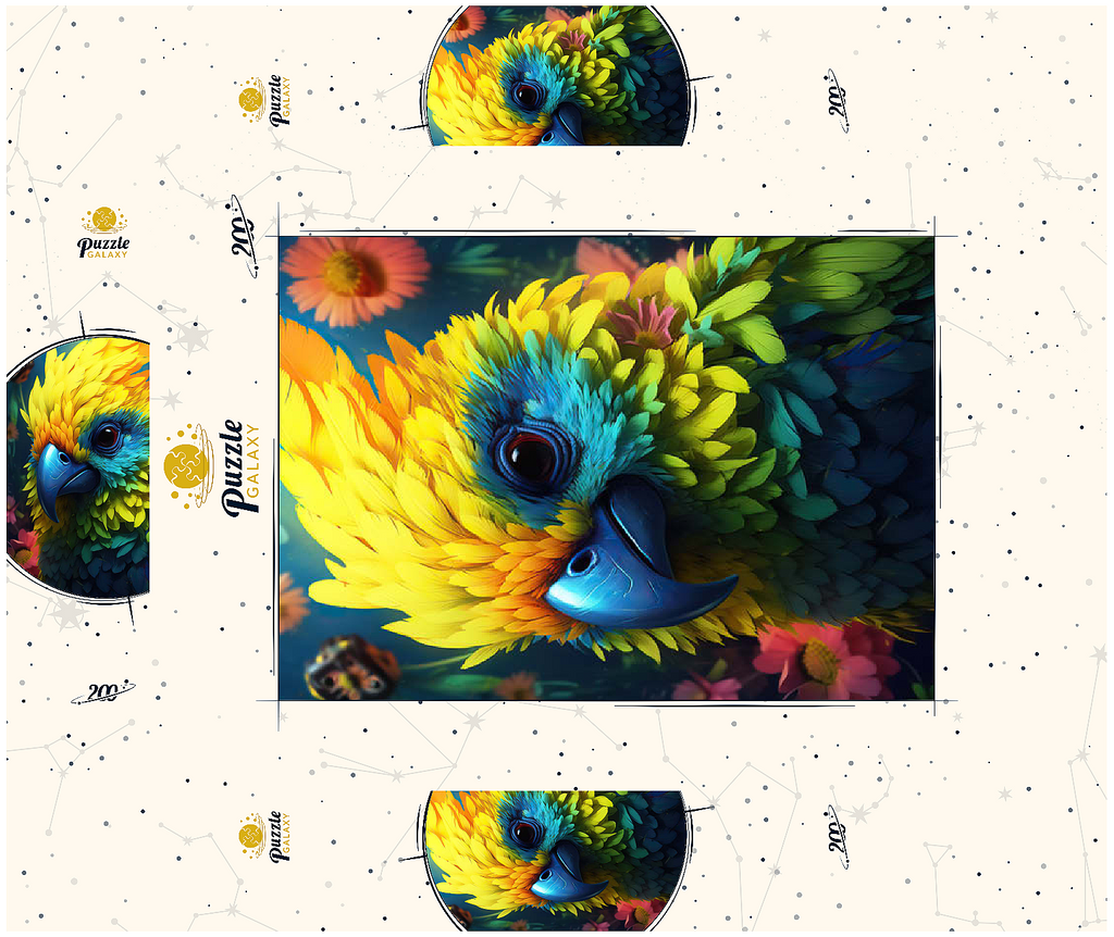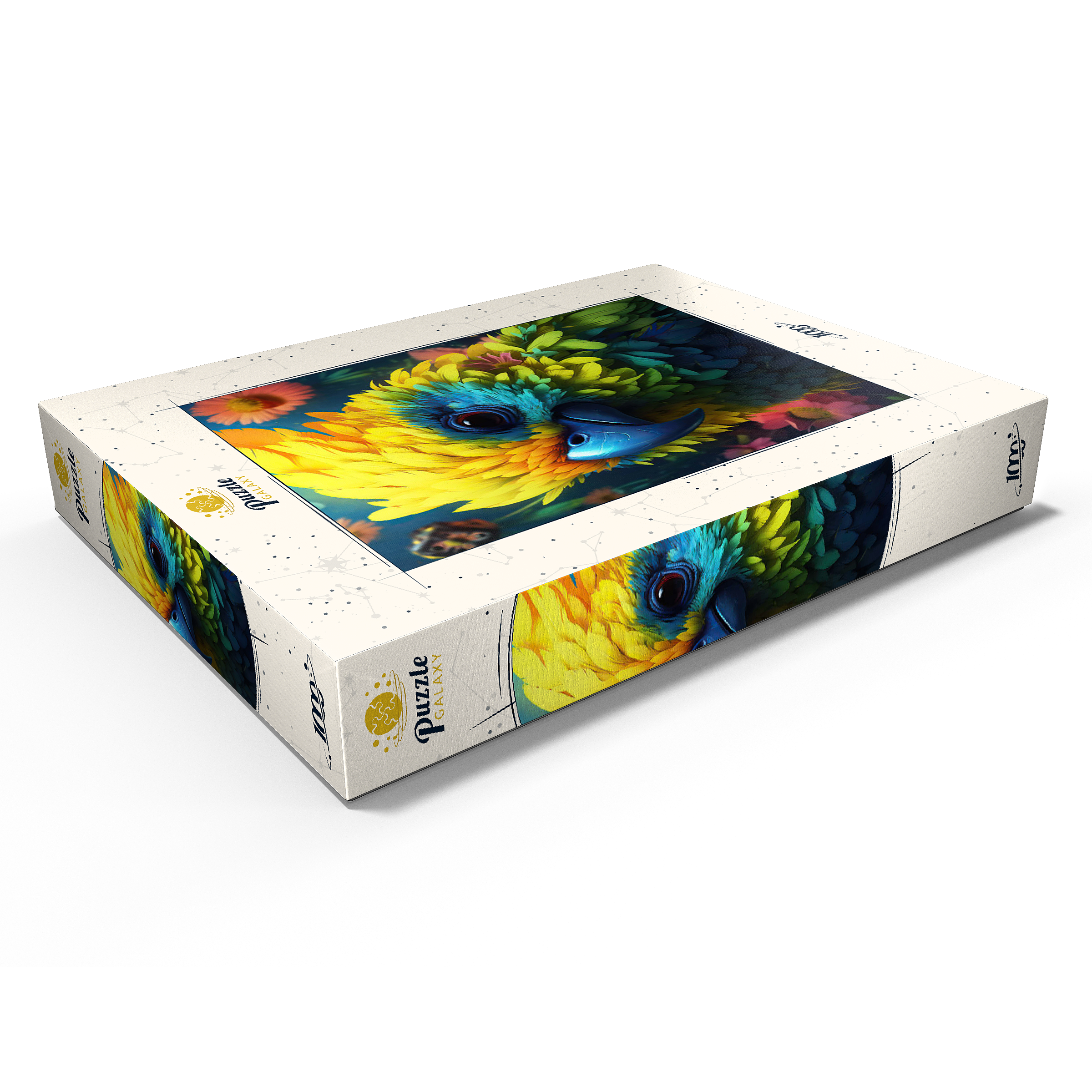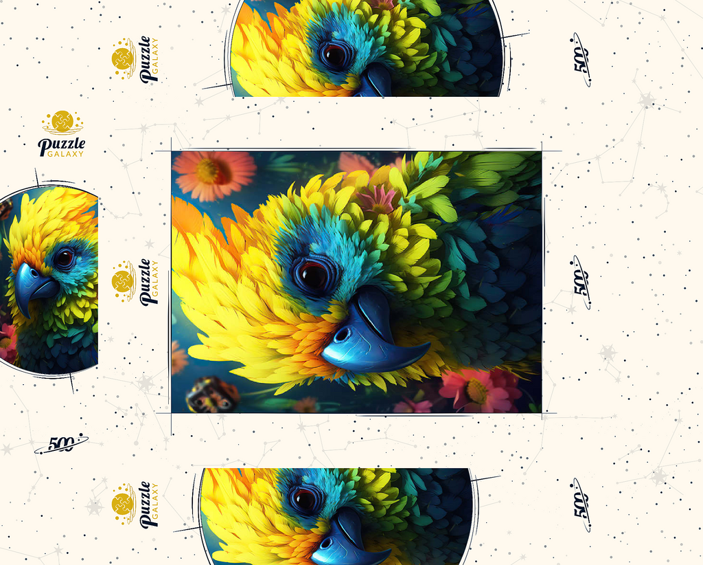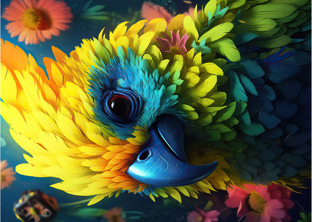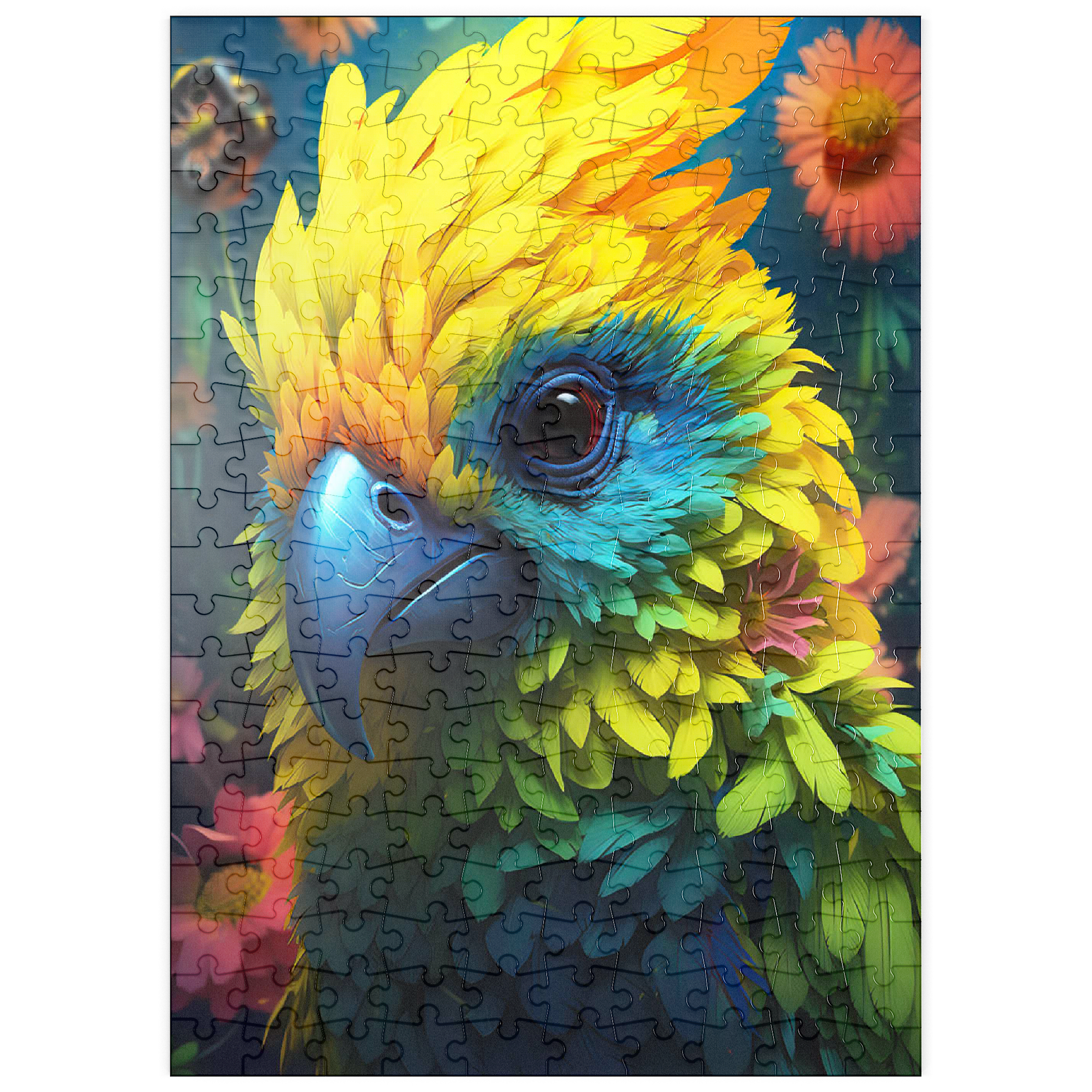 Erleben Sie die atemberaubende Schönheit dieses lebhaften tropischen Papageis, der mit auffälligen gelben, grünen und blauen Federn geschmückt ist. Die filigranen Details seines Gefieders sorgen für ein faszinierendes Farbenspiel, das durch den weichen Blumenhintergrund mit zarten Blüten in warmen, einladenden Tönen noch verstärkt wird. Der scharfe, metallische Schnabel und die stechenden Augen des Papageis verleihen ihm Tiefe und Realismus und machen ihn zu einem exquisiten Kunstwerk für Vogelliebhaber und Naturbegeisterte. Diese atemberaubende Darstellung fängt das Wesen der exotischen Tierwelt ein und verleiht jedem Raum einen Hauch von Wunder und tropischem Charme.