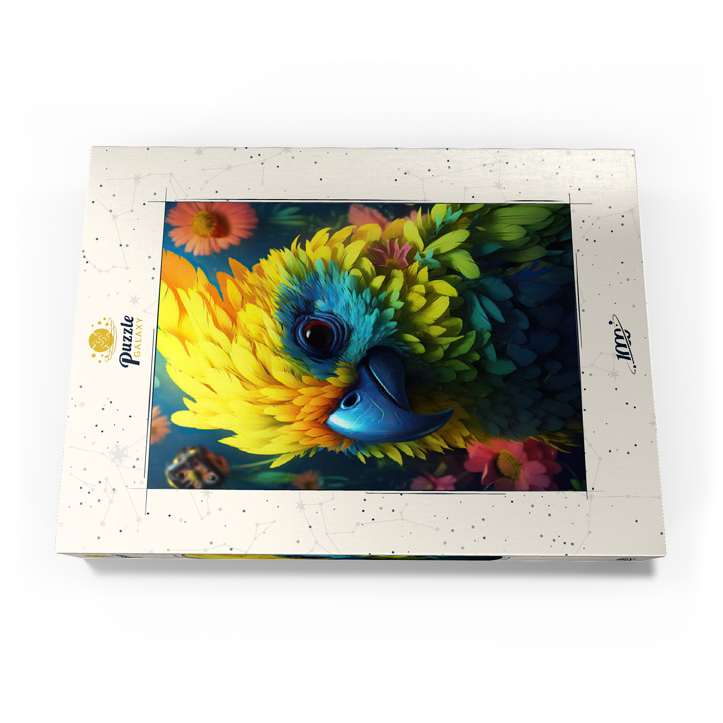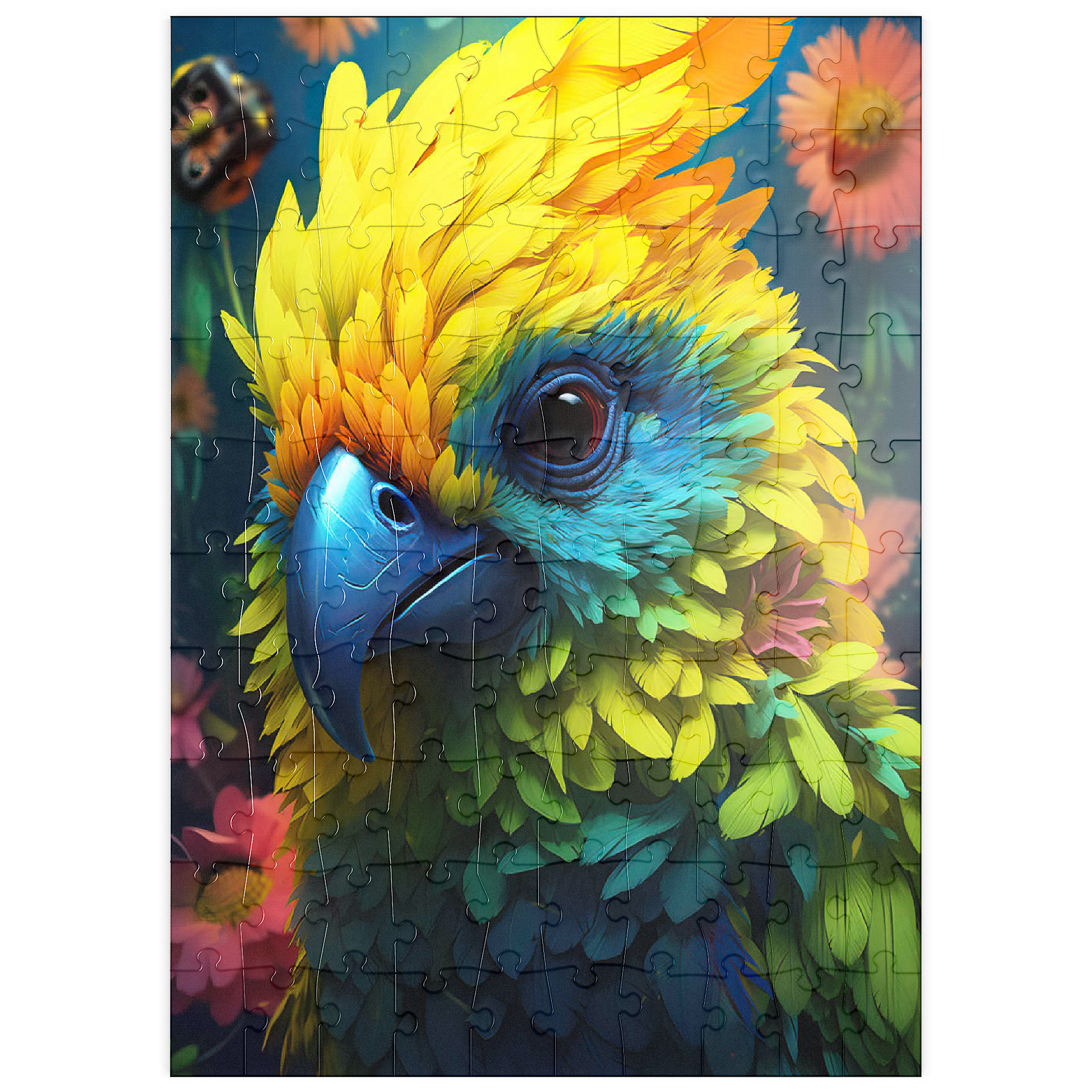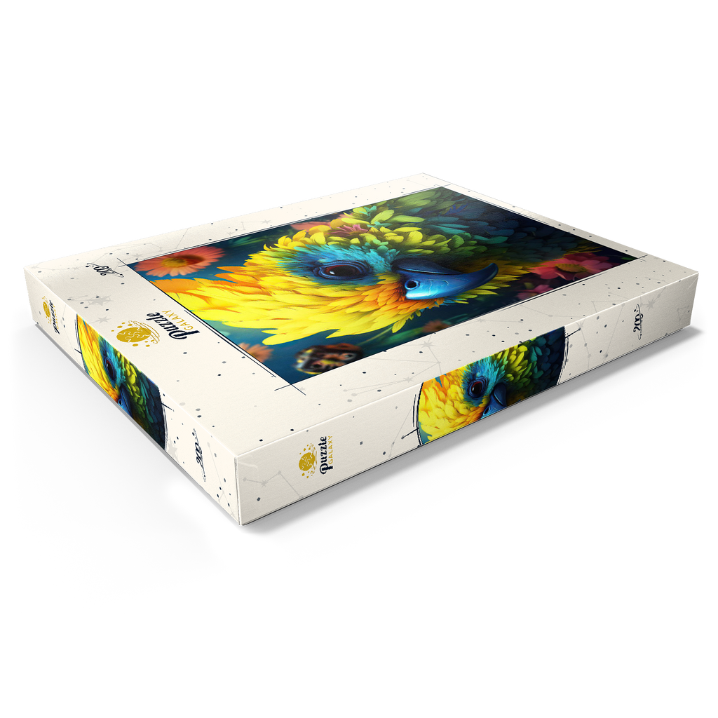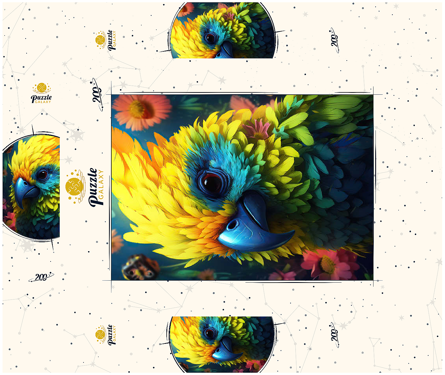 Erleben Sie die atemberaubende Schönheit dieses lebhaften tropischen Papageis, der mit auffälligen gelben, grünen und blauen Federn geschmückt ist. Die filigranen Details seines Gefieders sorgen für ein faszinierendes Farbenspiel, das durch den weichen Blumenhintergrund mit zarten Blüten in warmen, einladenden Tönen noch verstärkt wird. Der scharfe, metallische Schnabel und die stechenden Augen des Papageis verleihen ihm Tiefe und Realismus und machen ihn zu einem exquisiten Kunstwerk für Vogelliebhaber und Naturbegeisterte. Diese atemberaubende Darstellung fängt das Wesen der exotischen Tierwelt ein und verleiht jedem Raum einen Hauch von Wunder und tropischem Charme.