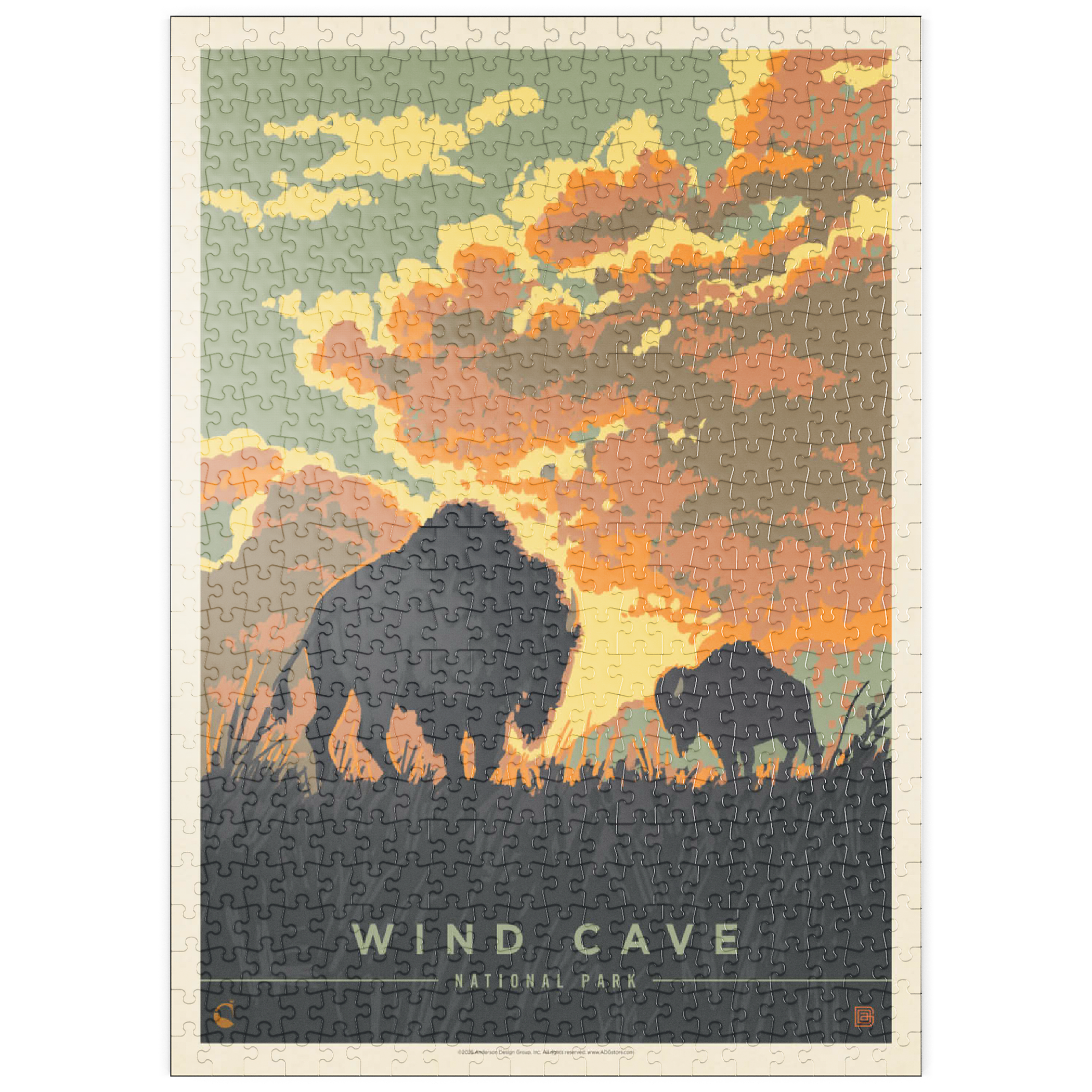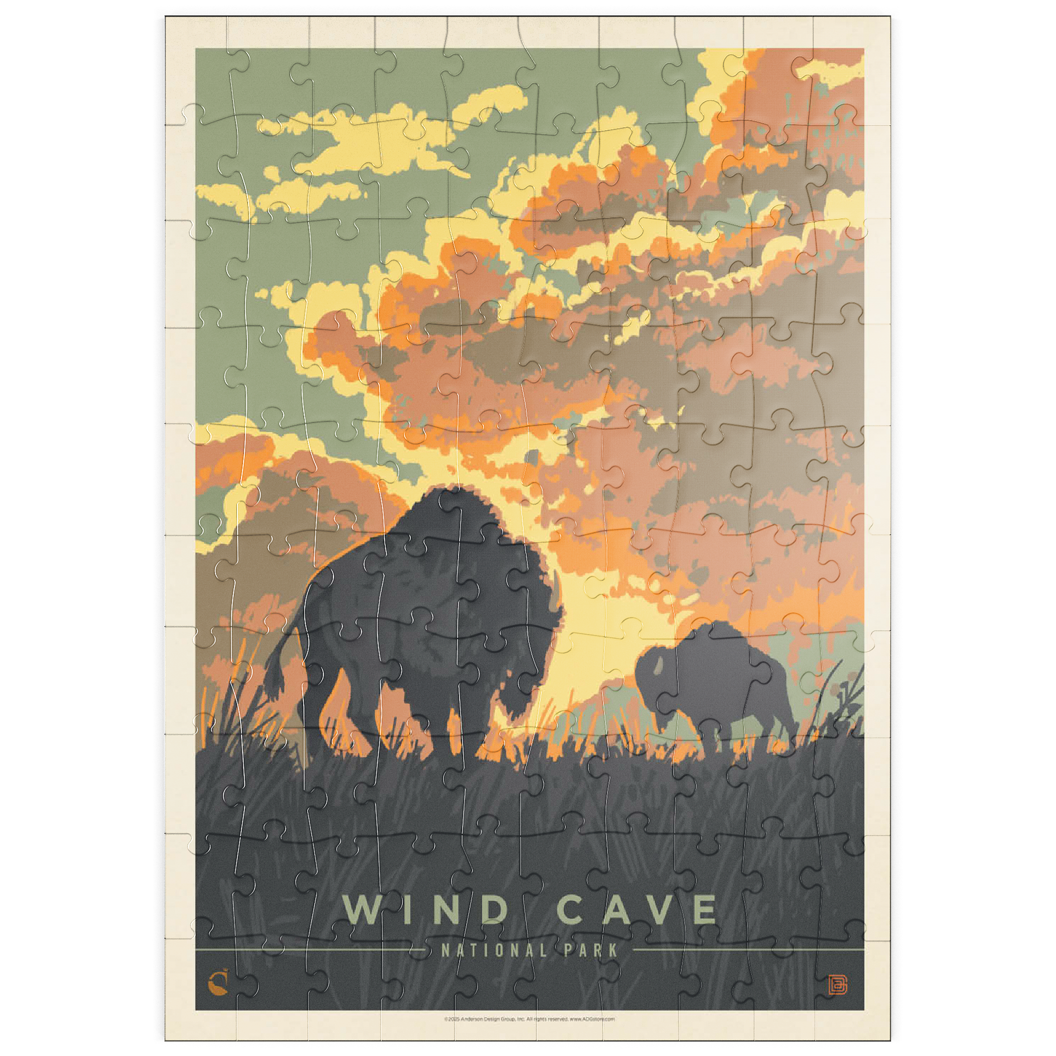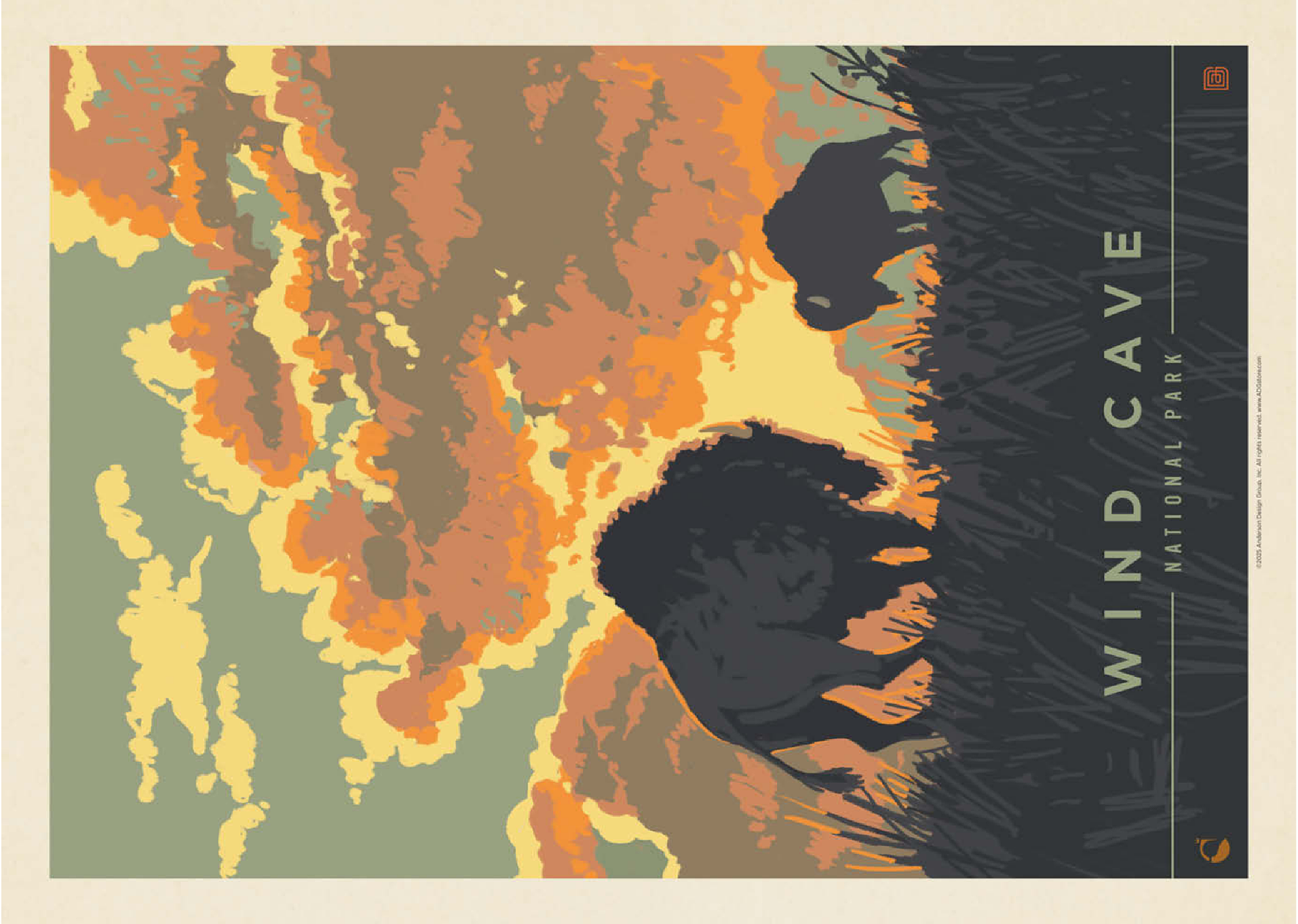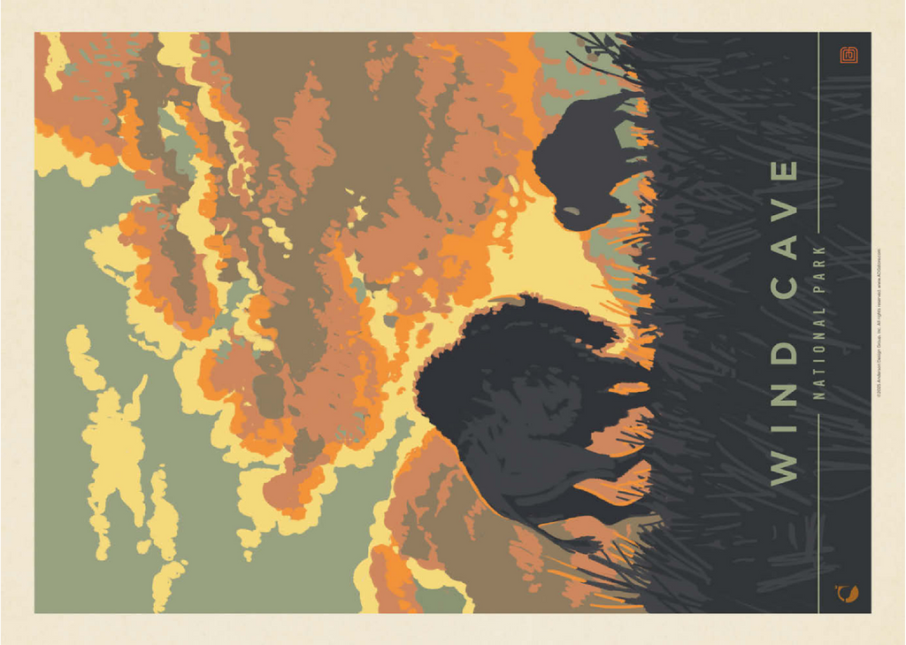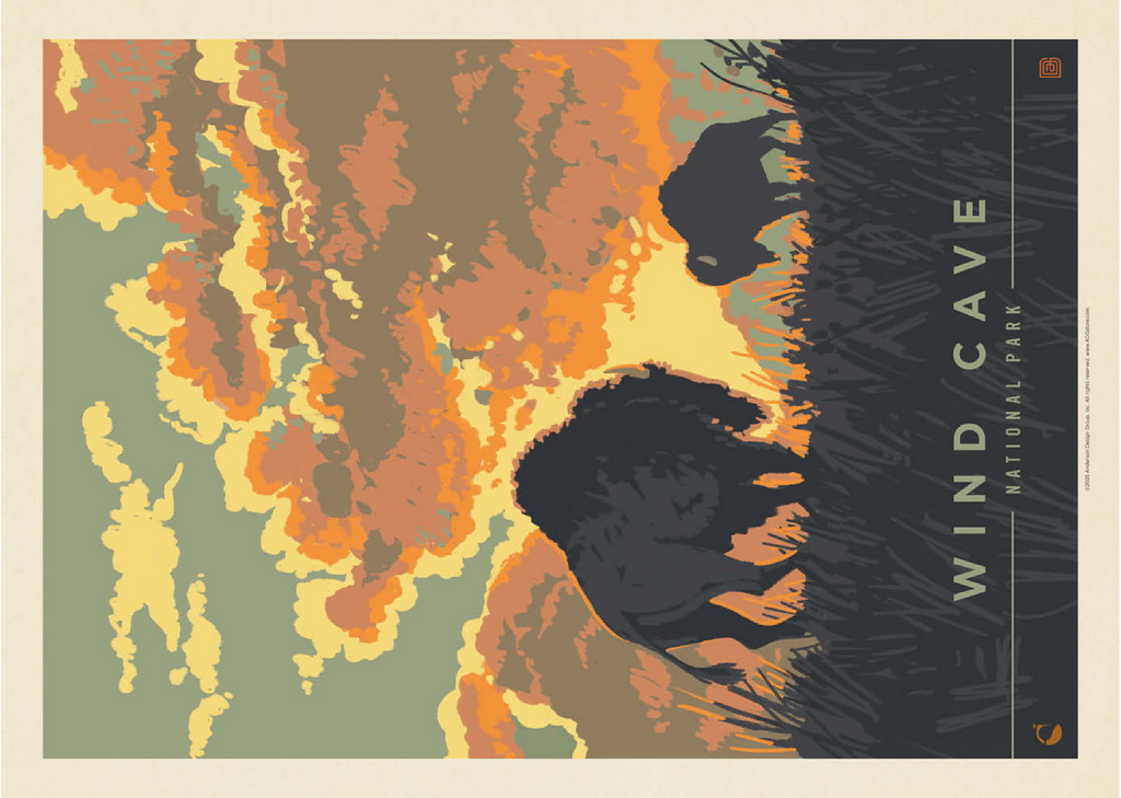 Wind Cave National Park: Bison Sunrise, Vintage Poster