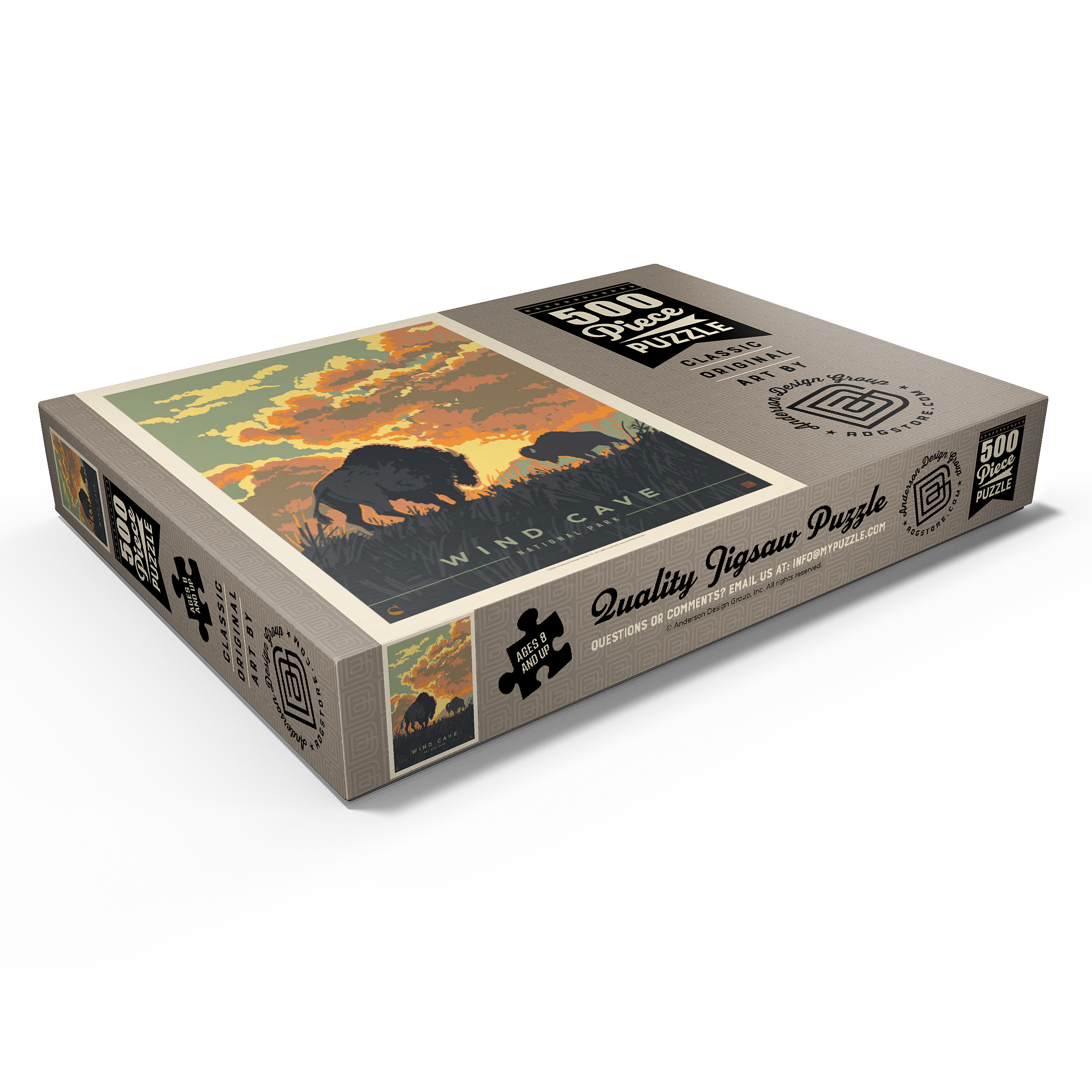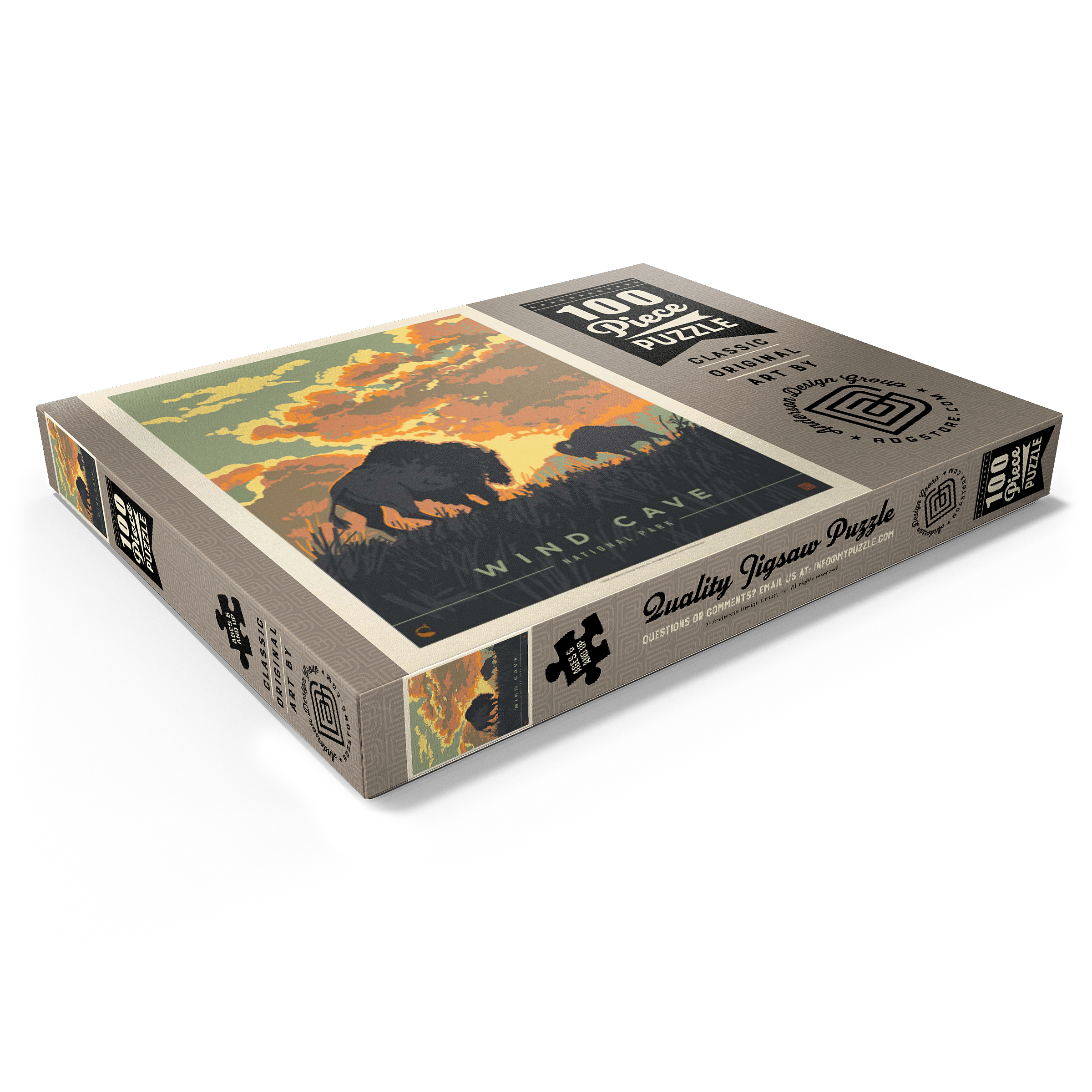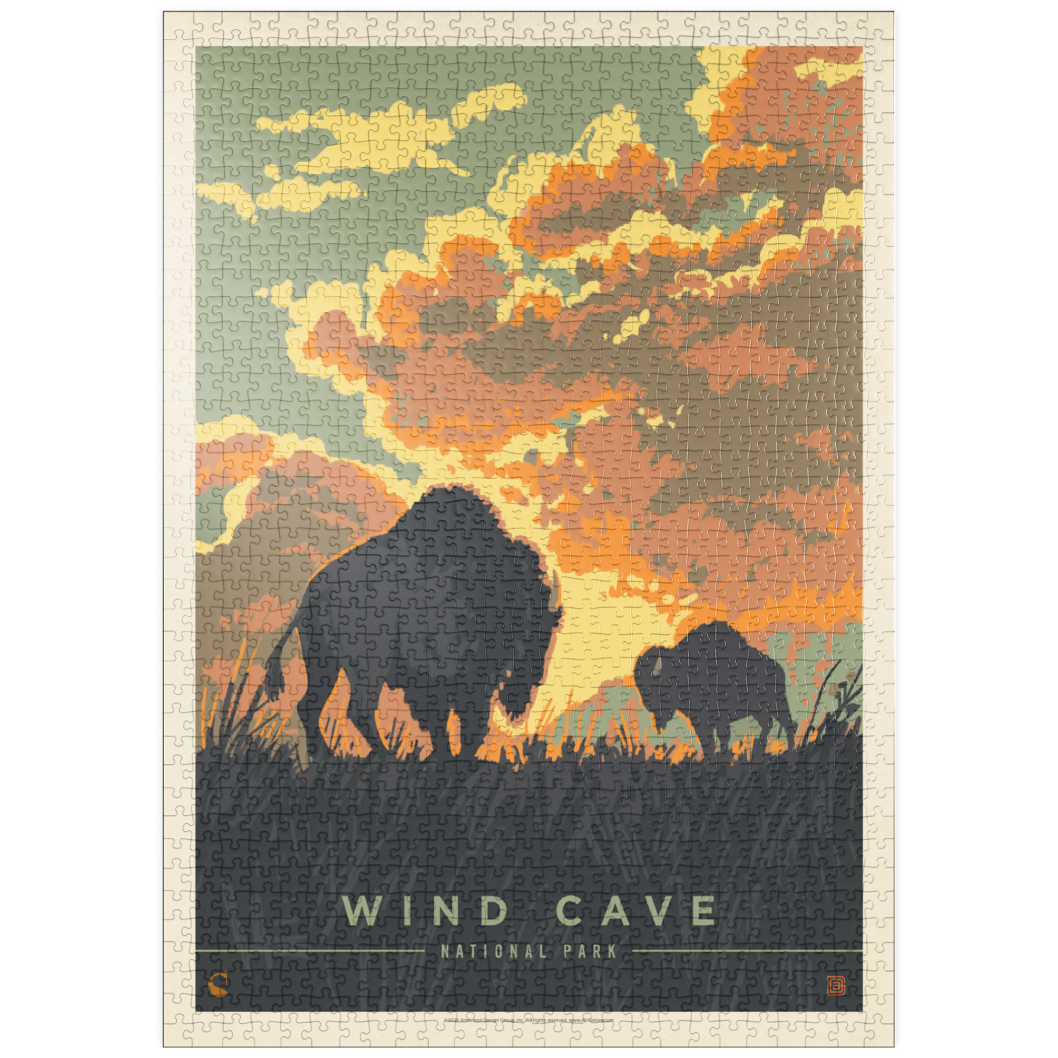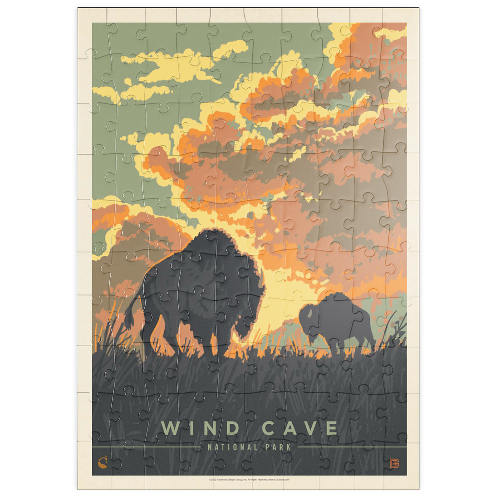 Wind Cave National Park: Bison Sunrise, Vintage Poster