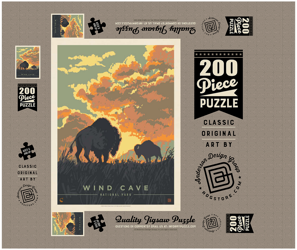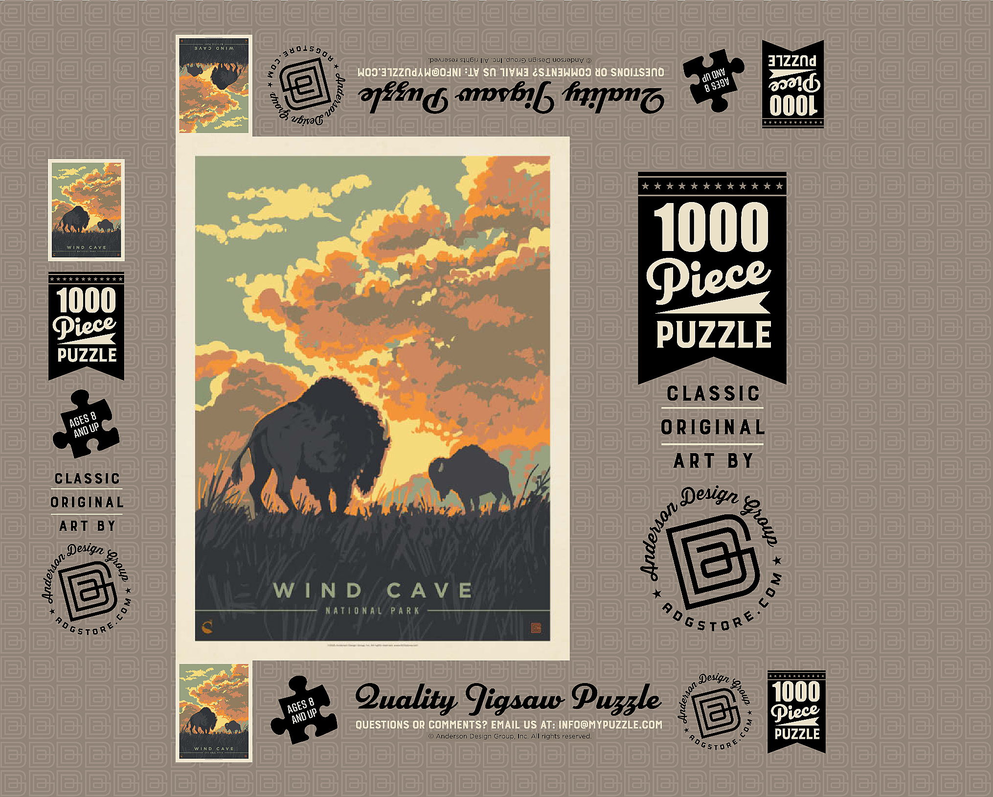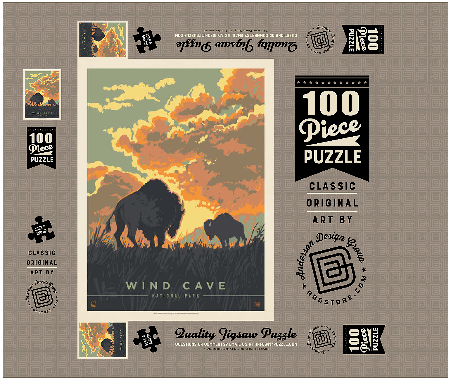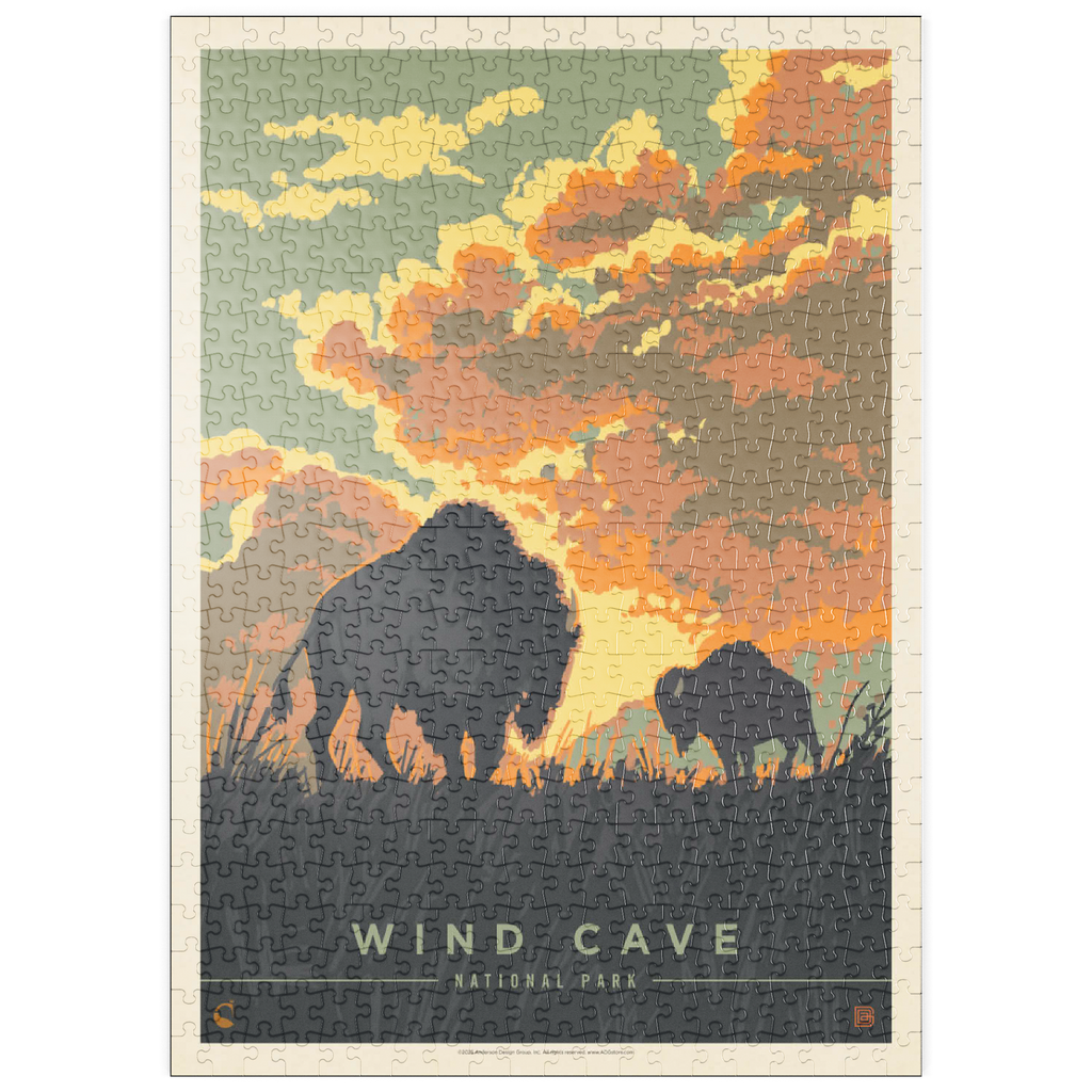 Wind Cave National Park: Bison Sunrise, Vintage Poster